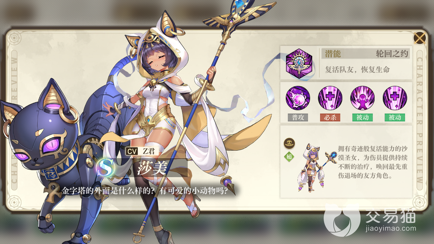 2.【最强辅助位置】:游戏高手可能觉得奶妈会影响输出但是所以角色游戏的完美队伍就是极致的输出但是这款游戏不同,无论你多强大奶妈都是队伍里不可或缺的元素,可以极大的增加你的容错率,例如【阿尔伯特】有两种行动模式,一种是加伤种是奶队友,完全体的队伍必须要带的角色可以加快你的输出还能保证生存谁不爱这种角色呢。面对生存压力大的boss即将推出的【莎美】绝对是当仁不让的最强奶,现在的奶角色专门奶的角色都是a级别左右属性较低,作为s的奶妈可以持续回复还能复活队友升星之后只会更加强力,下一个池子大概率会出现大家记得捞一个养起来绝对是t0级别的存在。