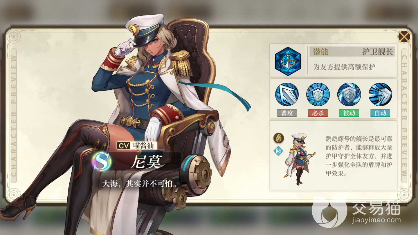1.【最强的坦克角色】:游戏的机关关卡,例如火箭和飞镖的袭击玩家很多第一次都很难躲得开这个时候坦克作用就体现了,选择【尼莫】船长可以给你一个放心的前排除了坦度强大还有别的坦克没有的强大坦度,面对强大的boss可以省下一个坦克位置或者奶妈的位置可以说是后期强力配队不可或缺的角色,当然如果对方火力不强血量强大,可以试着用皇女【绫】作为一个坦克还能作为一个强力的输出位置,格挡非穿透的伤害,反击穿透一个横排的剑攻击,如果蓝色的球足够很容易成为mvp队员而且现在在up出现的限定角色,现在比船长更好获取,大家趁着时间赶紧捞一波吧。