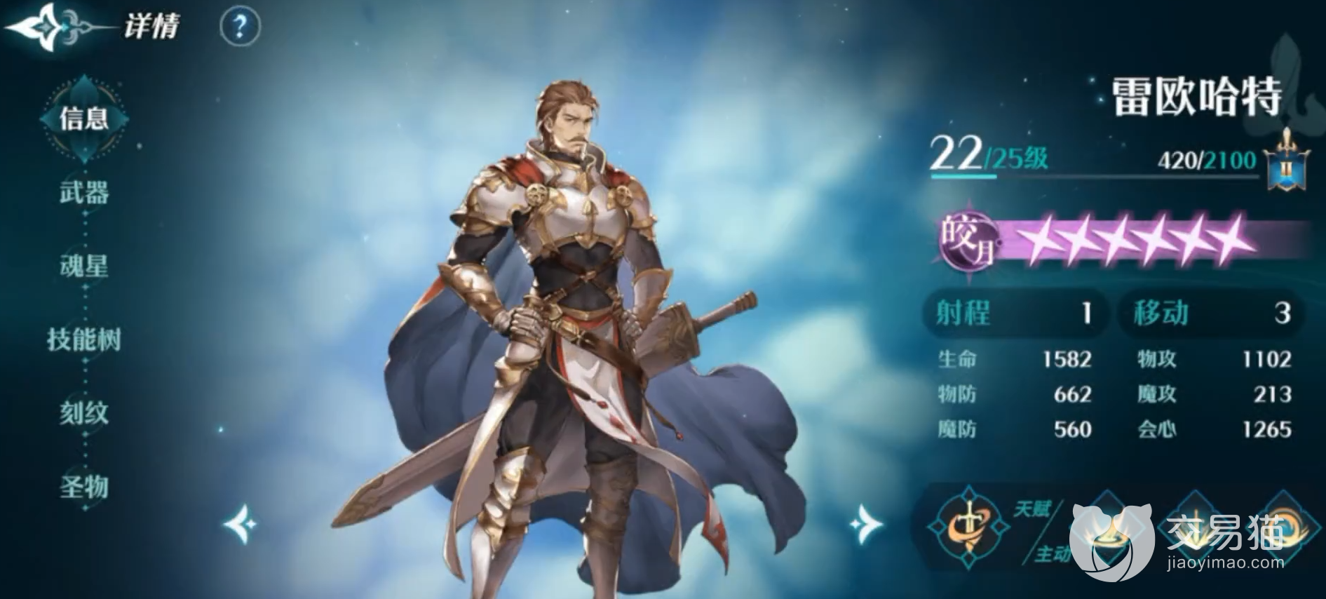 一开始要介绍的就是雷欧哈特,定位是先锋,sr级的角色。他的主要作用是进行一个物理防御的肉盾角色。可以替队友进行一个承担伤害的技能,大招可以给自己提供护盾,养成到高星后还可以给队友加盾。