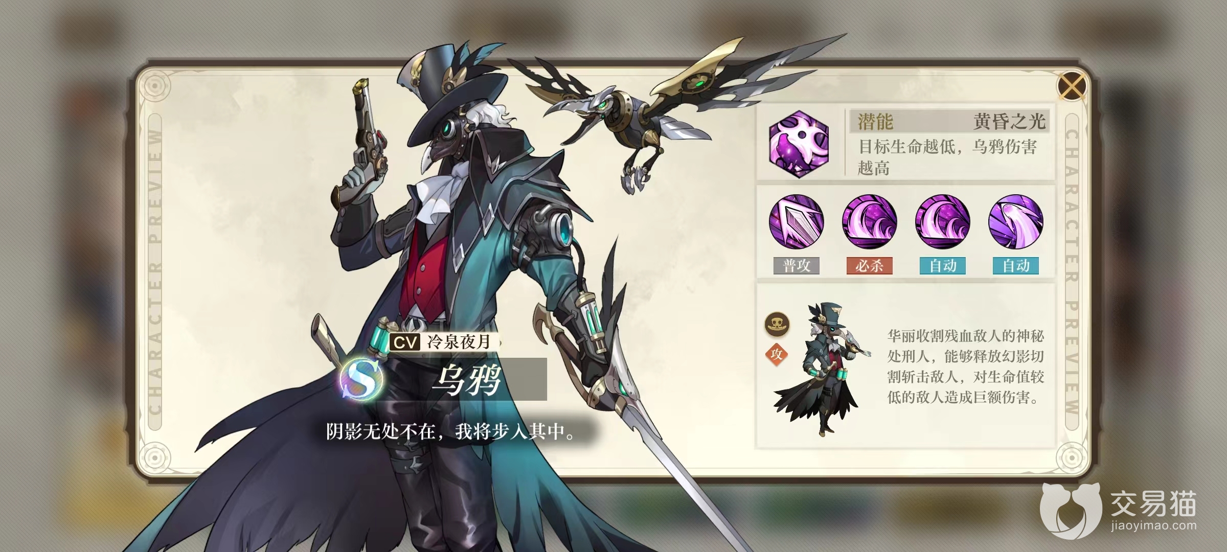 当然乌鸦稳坐T0主要还是依靠其潜能,乌鸦自带斩杀机制,即目标的生命值越低输出伤害越高,收割全场的能力哪个小伙伴不想拥有呢?