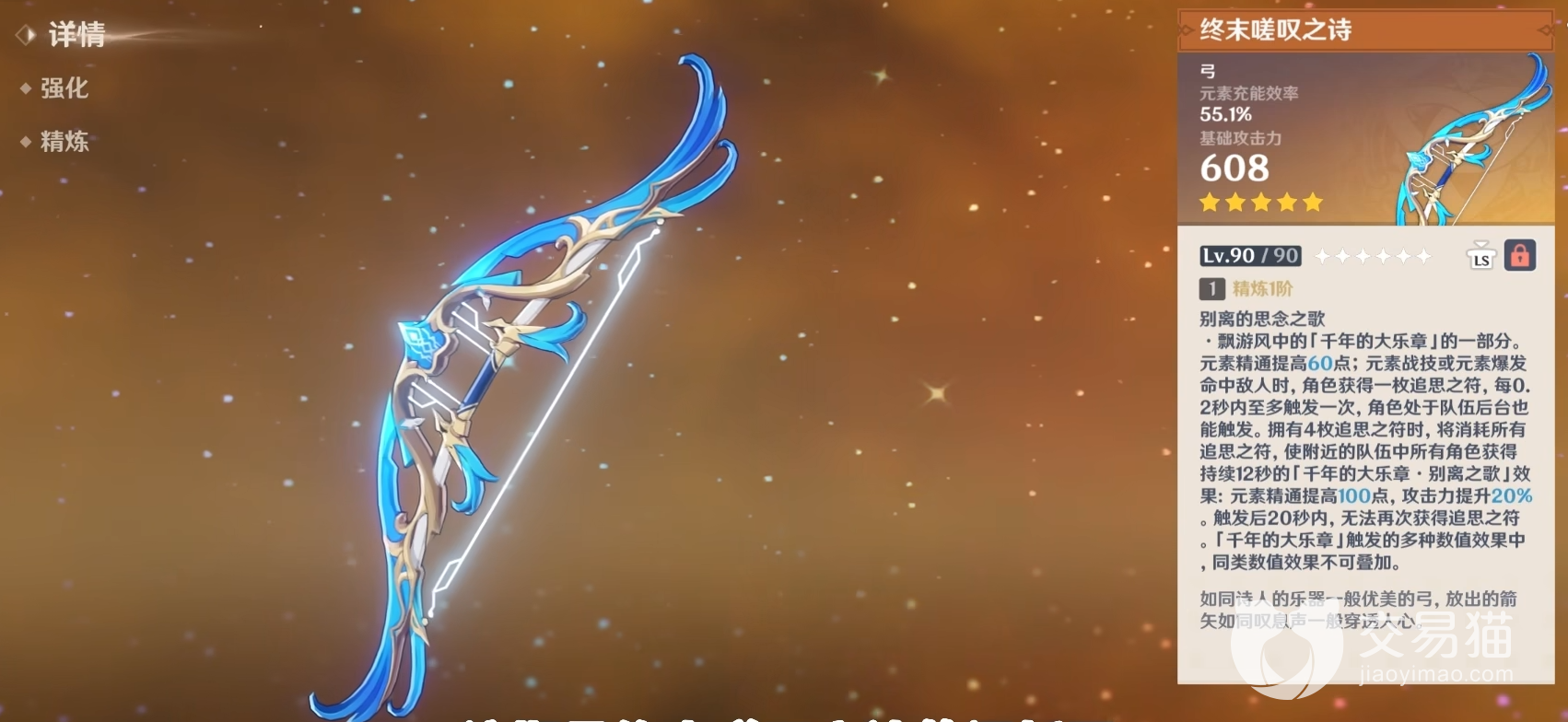 作为弓箭手可以选取的武器应该都为充能作为主词条,精通作为增伤的副词条,那么五星终末以及四星的西风祭礼弓都是不错的选择,那么这个角色作为没有风神的玩家来说可以成为一个替代品,当然还要等待正式技能玩法推出才能下定论。