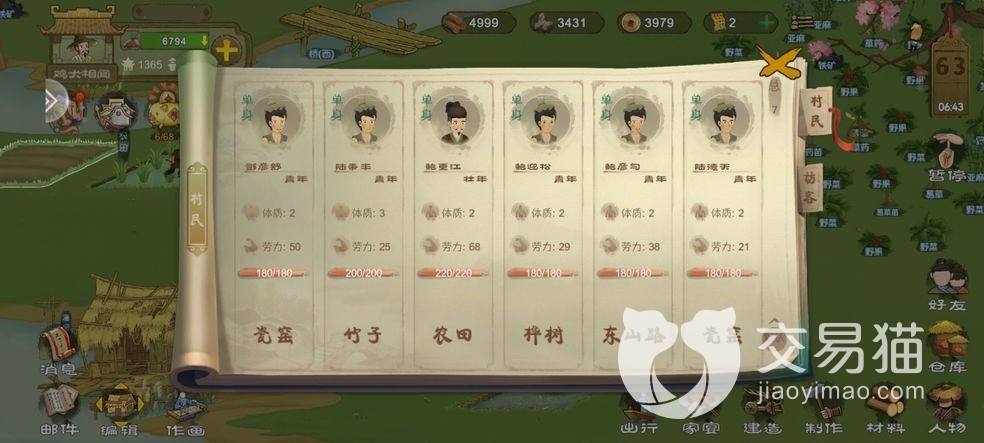 它不值钱且不能用了之后可以拆了重新建。在游戏前期人少的情况下,安排它们的婚事相对来说比较简单,但是在后期居民一旦多起来就会有更多的新生儿出现,但也会有很多的村民去世,这时候人口的数量就会出现不稳定的状态。此情况下外出探险的队伍可以派出两队进行招人,婚配就可以使用茅草屋。