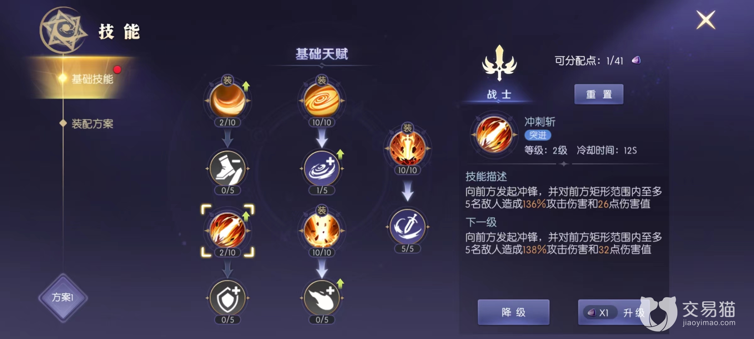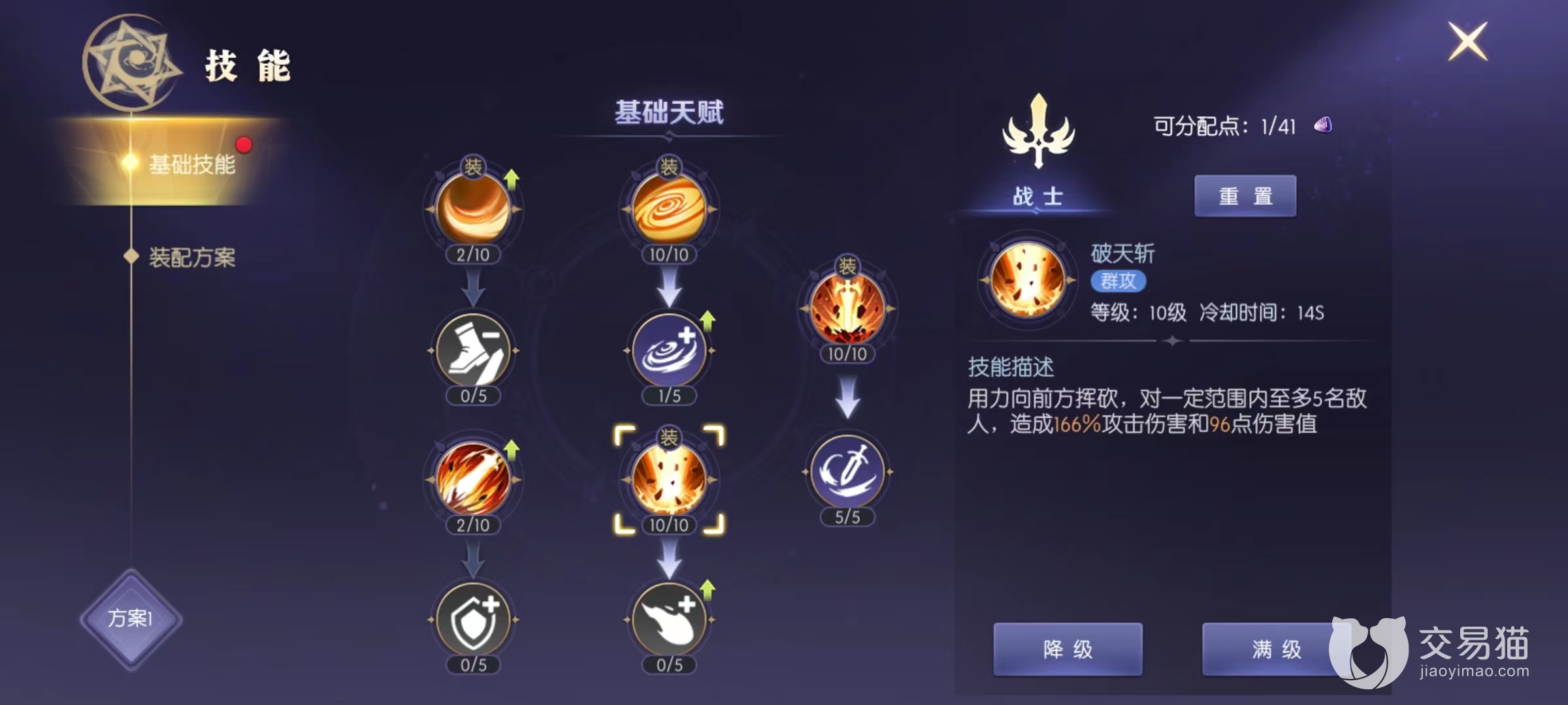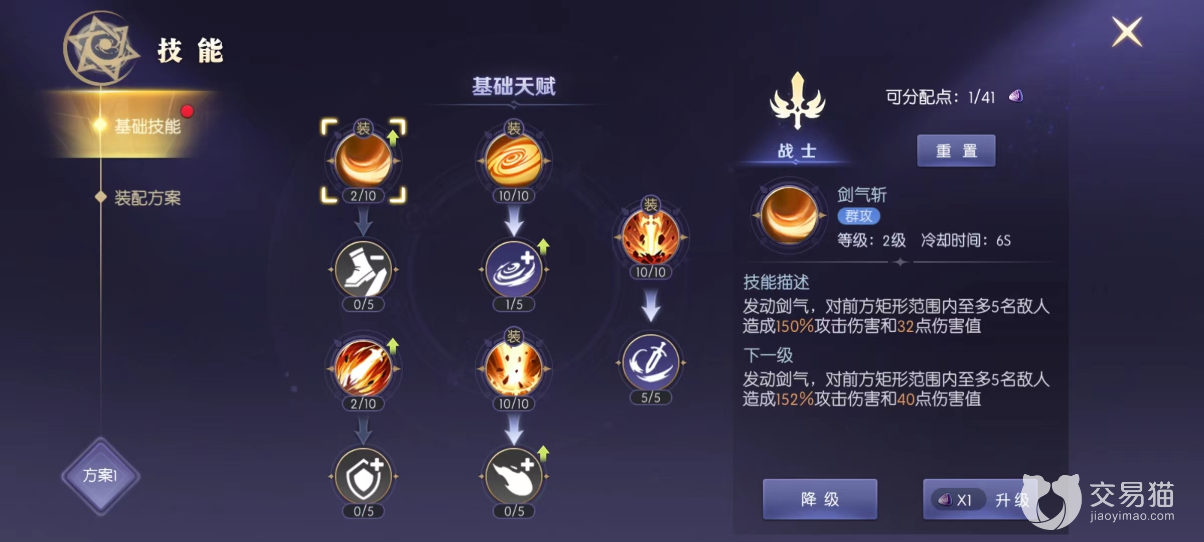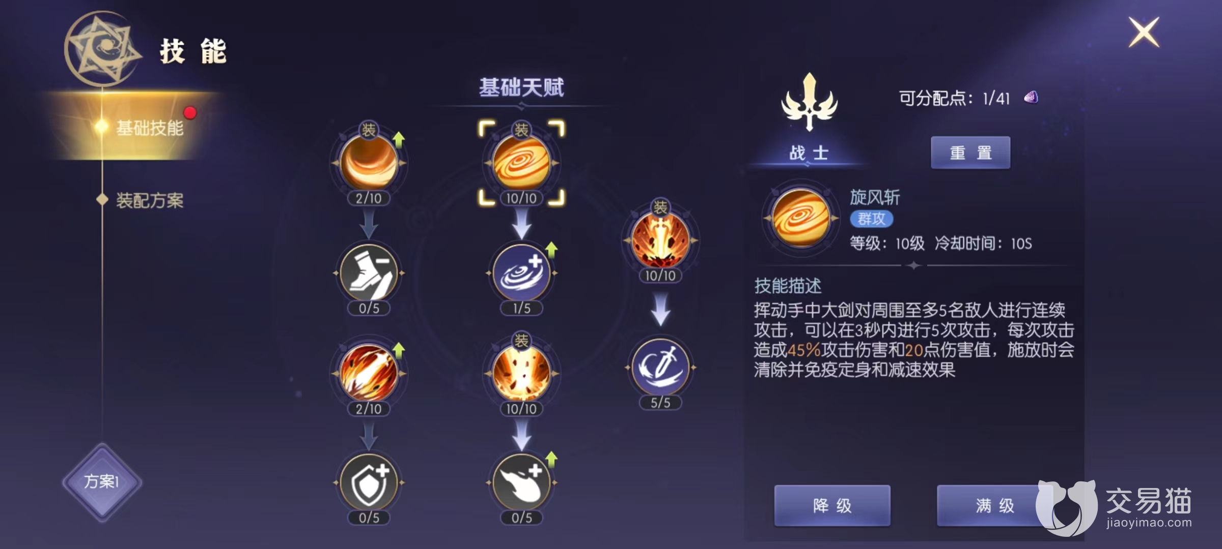 每一个职业在升级后都可以获得能够分配的技能点,在初始阶段都拥有5个不同的技能,但是在进行装配时只能选择4个,而且前期技能点有限,无法做到每一个技能都强化到位,所以必须进行取舍,然后再选定装配的顺序,这样才能发挥出最好的效果。对于战士来说,如果选择刷副本和单人做任务,那么小编建议的技能组合为剑气斩,旋风斩,神罚之剑和破天斩,冲刺斩因为更加偏向于位移,所以在副本战斗中无需选择。