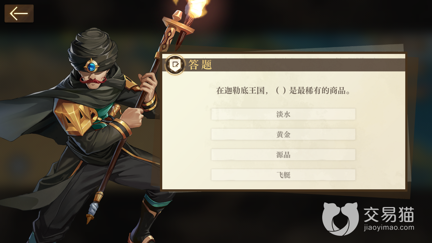 例如这一题目是关于游戏中迦勒底地区的问题,玩家看到如图的问题选择回答常识,例如这一道题目的答案是水他就会给玩家丰厚的奖励,这种大头兵角色一般只给面包和货币。