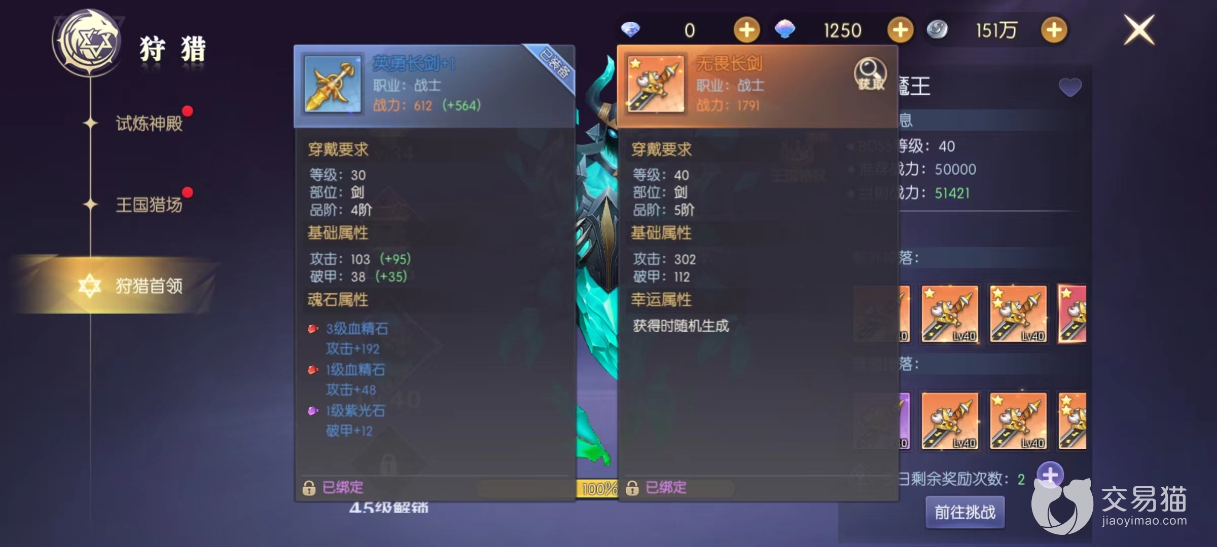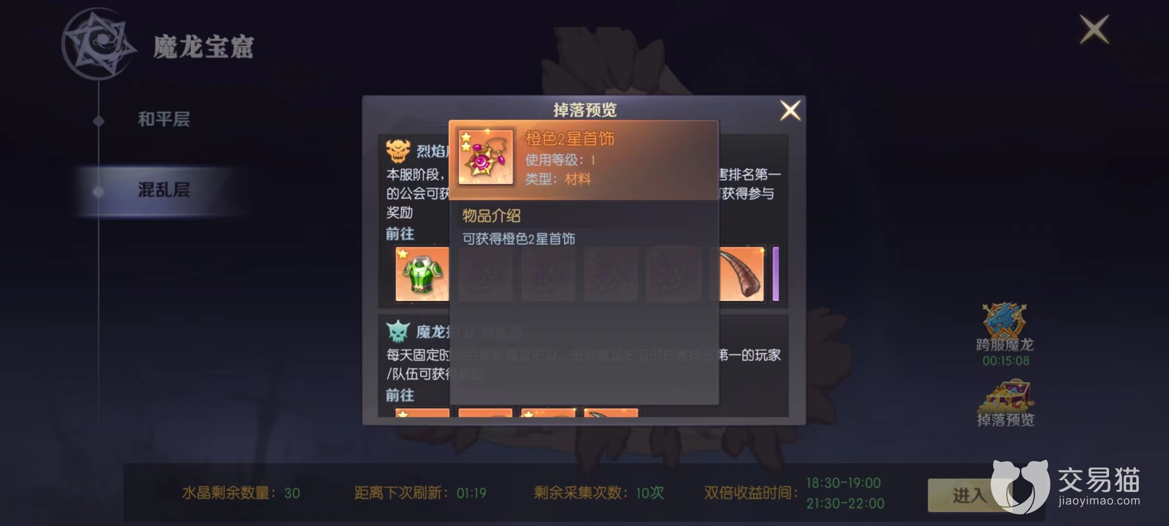 这就涉及到装备的等级和星级划分,4阶指的是装备等级达到40级以上,二星指的是要在升星操作中至少提升一个星级,达到二星才能符合要求。所以涉及到的操作主要有高等级装备的获得和装备星级提升。先来说一下装备如何获得,目前主要是通过魔龙宝窟和狩猎来获得极品装备,狩猎又包括试炼神殿,王国猎场和狩猎首领,这些都能够掉落各个部位的极品装备。其中试炼神殿主要掉落武器和耳环。魔龙宝库可以掉落首饰和其他部位的装备等。