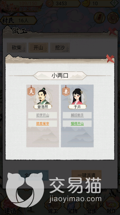 当然,进一步在选择开山做工的页面下,玩家们考虑的属性就可以参考初学开山和懂得开山这两个了。虽然都是比较基础的开山属性,但依然可以为玩家们带来额外的属性加成。如果是夫妻村民的话,那么整体的工作效率会得到进一步升级,玩家们的后续选择都可以参考这样的思路来进行。