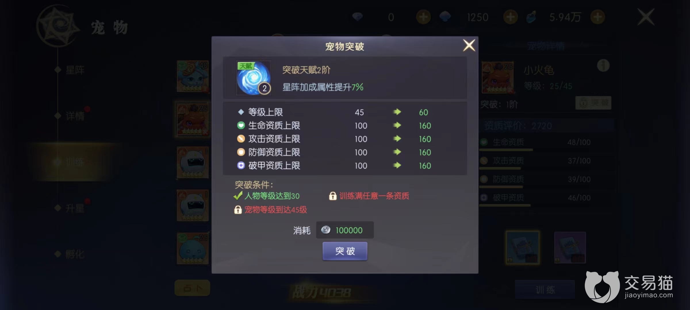为了获得更好的强化效果,一定要妥善选择宠物,尤其是出战的三名宠物必须是 SSR品级以上的才能有强化的价值。选择好了之后,首先要进行的就是等级提升,需要消耗宠物经验,能够通过星空之境、黑市和命运魔镜等活动获得,但是宠物的等级受突破的限制,如果无法取得突破只能固定不动,而要想突破需要人物等级,宠物等级和资质满足对应条件。