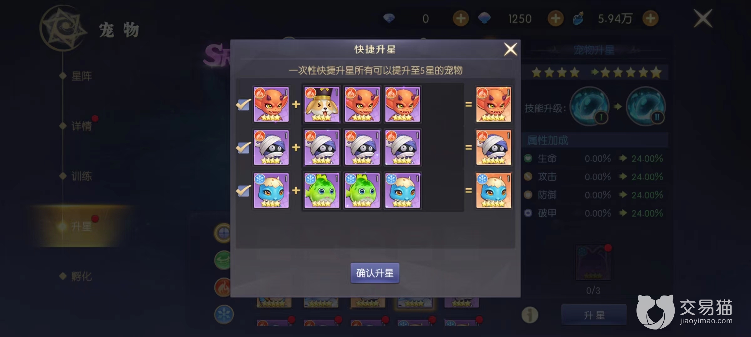 然后就是宠物升星升星能够提高各项属性加成以及技能等级技能,等级对于出战的三名宠物来说非常关键,能够直接提高效果。宠物升级需要消耗同名碎片以及同等级的其他宠物碎片。这些就需要在占卜中获得,也可以通过商城进行兑换,包括在荣誉商店、工会商店等地方都能够找到。