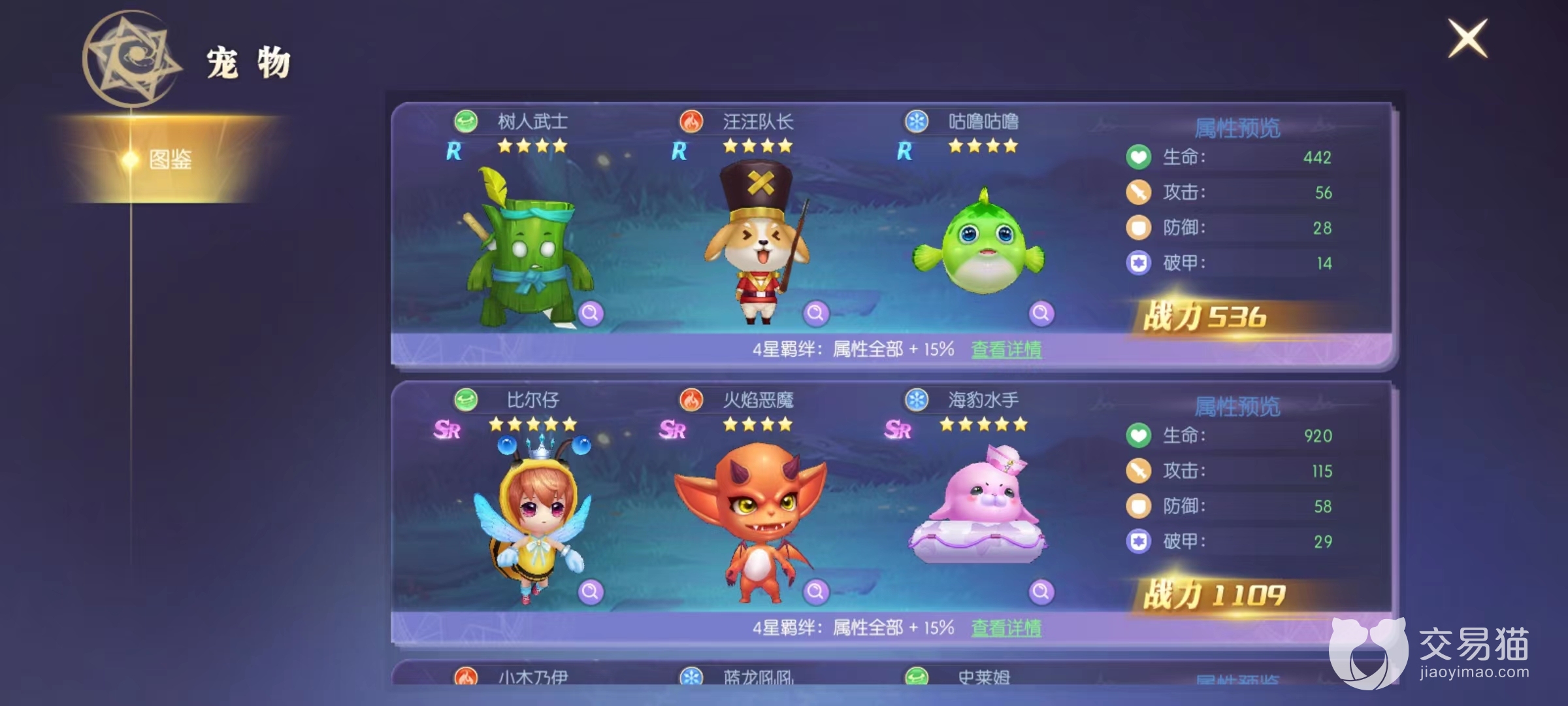 最后是宠物图鉴,这是比较容易忽视的地方,只要获得任意宠物都能在图鉴里进行激活,提升等级后同样可以在这里进行升级。羁绊能够增加各种属性,无需上阵就能获得,所以多多收集不同宠物也是对战力提升很有帮助的。