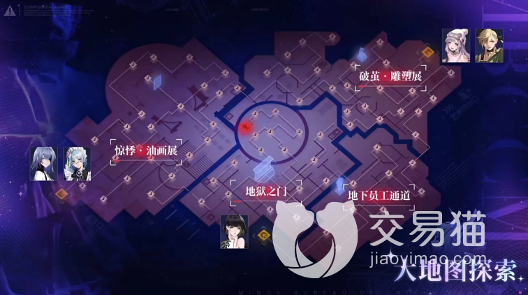 大地图探索,就像名字所说的那样,在大地图探索中,一块大地图被分为数块,局长们想要探索这些区域,就必须要派遣禁闭者们前往调查,每一个地区调查的人数不同,例如说破茧·雕塑展可以派遣两名禁闭者,而地狱之门只能派遣一位。每位禁闭者一次只能前往一个地区进行调查,调查进度可能会和禁闭者的练度挂钩,所以各位局长们在选择派遣禁闭者的时候定要谨慎思考,从性价比最高的角度出发选择。