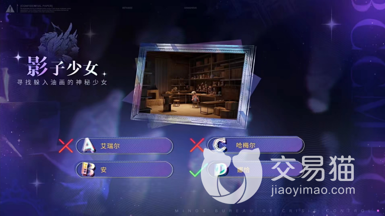 大地图探索对决策能力有要求,影子少女则对局长们的视力,对事物的敏锐度,以及对禁闭者们的了解进行了考研,在这个玩法之中,系统会给出一张油画,局长们要细心观察,察觉到油画中到底是哪位禁闭者藏匿其中,选择对的答案,才能获得奖励。