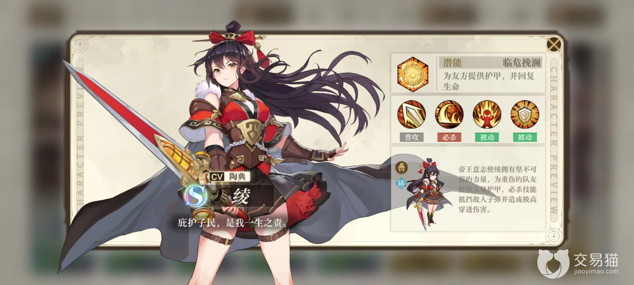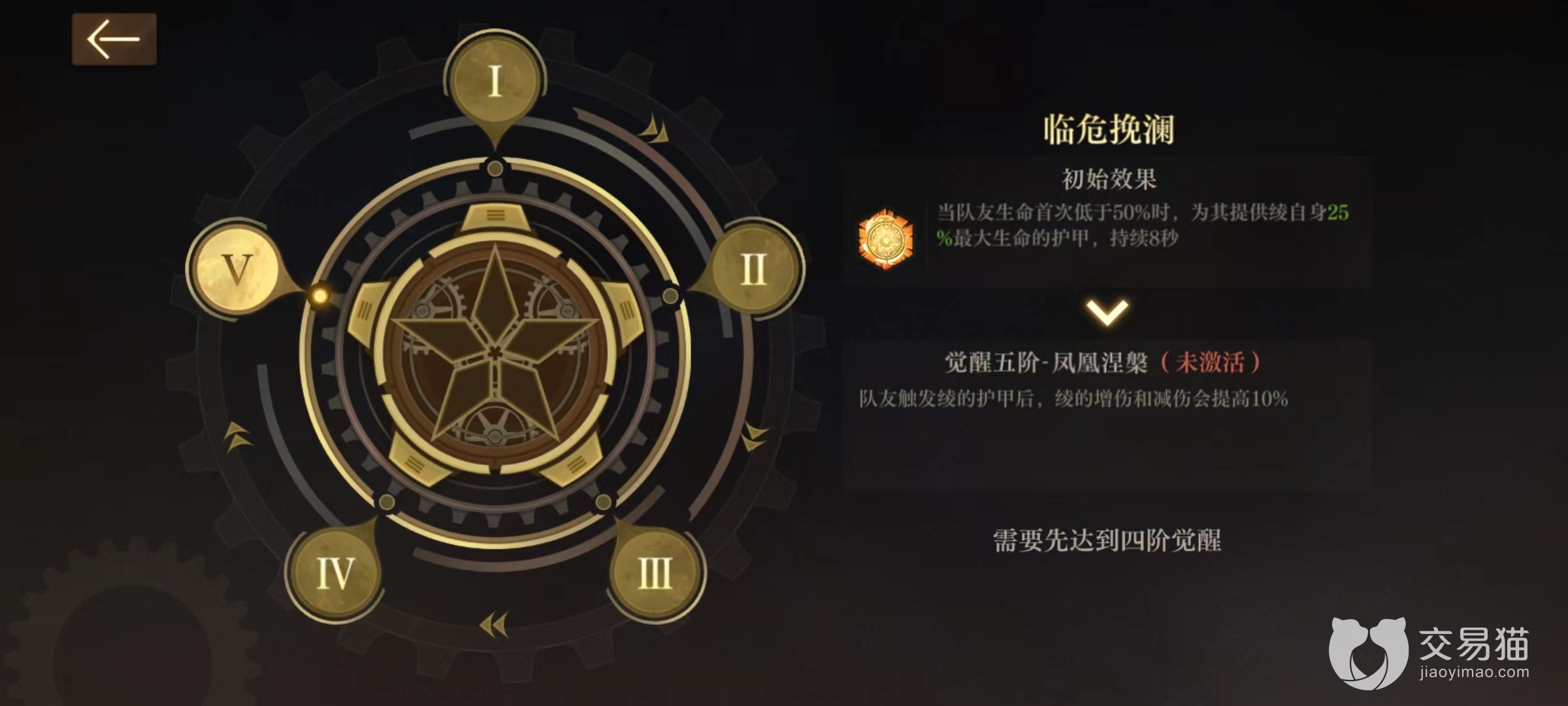 首先来看一下这名角色的主要技能效果潜能临危挽澜,当队友中生命值首次低于半血时,绫可以为其提供护甲加成,数值和自身最大血量相关。当潜能逐渐觉醒时,这一数值和比例还将继续提高,同时还获得额外加血效果,觉醒到5阶时直接激活凤凰涅槃。当成功触发护甲时绫的减伤效果和技能增伤也会随之提高。这一潜能可以充分保护好队友的安全,提高团队整体生存能力。