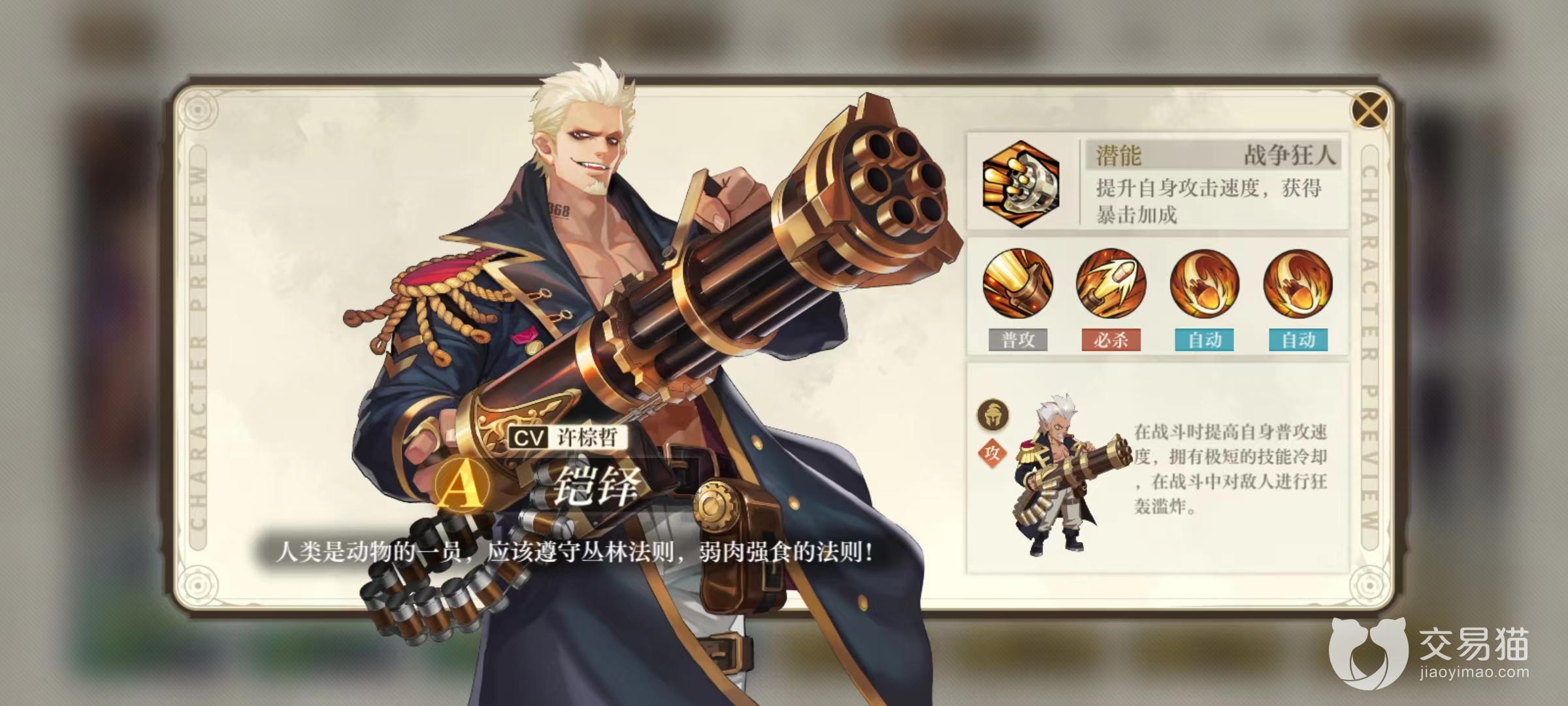 如果是平民玩家,那么在攻击角色的选择上也可以采用两名a级的形式,例如凯铎、千面、谢诺克,薇薇安等都是很好的选择。凯铎作为战争狂人,自身攻击速度和暴击都很可观,必杀技能够直接提升攻速,同样是一名输出很强力的角色。千面的暴击和暴击伤害比较高,谢诺克能够削弱目标的输出,薇薇安可以使攻击附带灼烧效果,这些都是很好的输出选择。