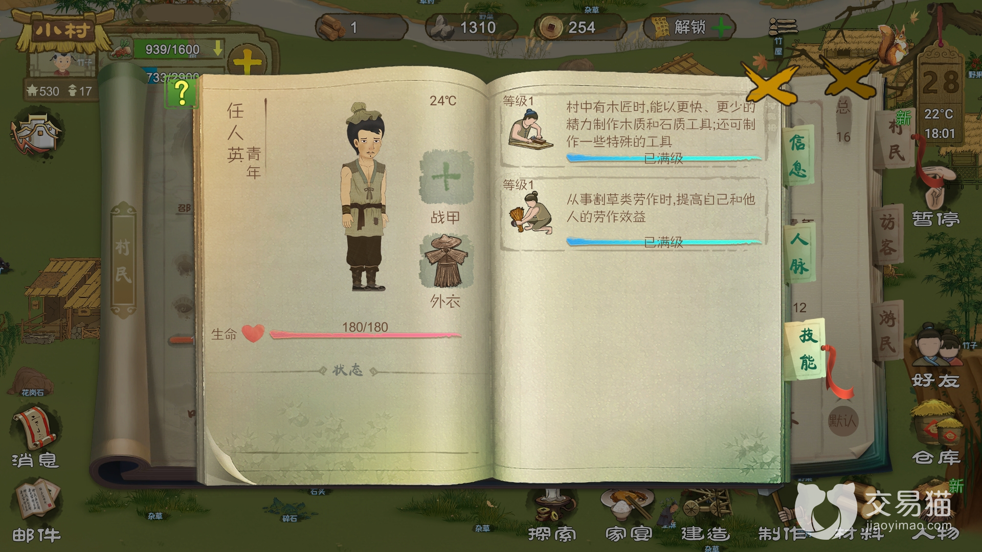 想要学习书本知识,首要的就是先将学舍建造出来,然后再去往廖溪村或是枫铃渡那里获取木经,这样就可以在学堂中让村民学习相关的技能了。在学习木经之后,居民就会获取到木匠技能。