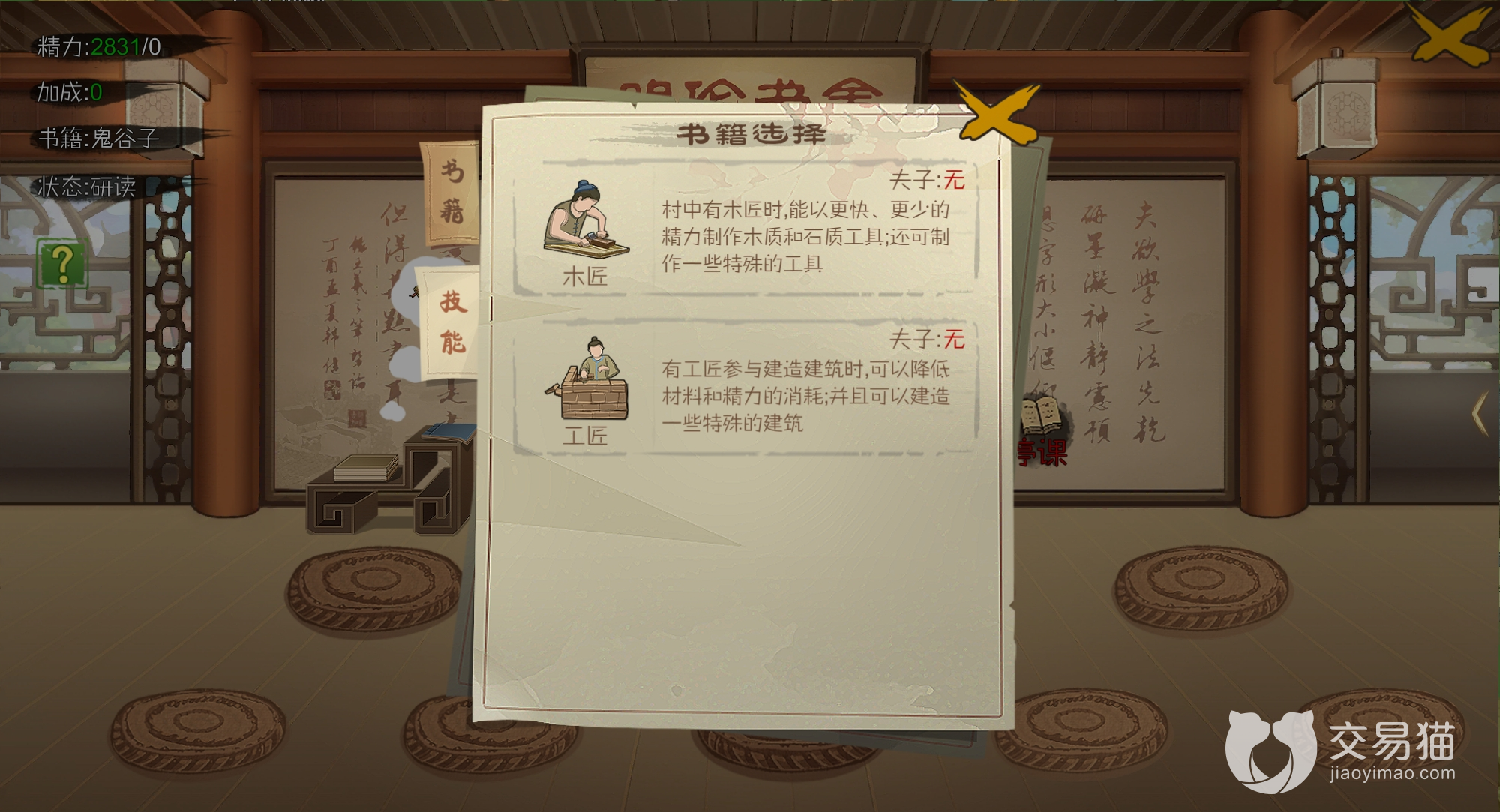 当前桃源记中现有的书本就只有九种,它们对应着课本内容和一些使用的技能。其中木经就是可以在廖溪村中获取到的,学习它就能获得木匠这个能力,作为木匠的村民,在制作工具的时候能够节省更多的时间,并且还会制作一些的独特的工具。
