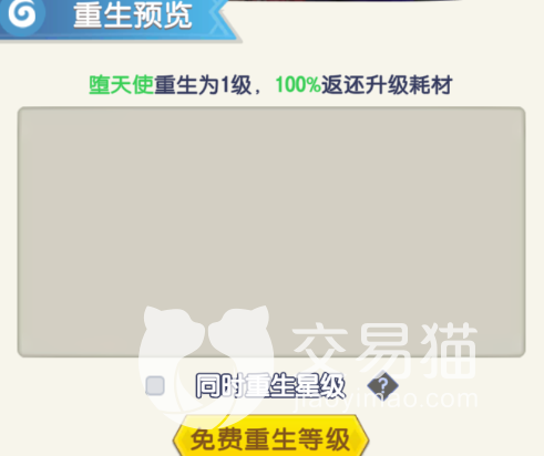 重生作用:能够返还百分百的升级材料,在游戏前期玩家养成的英雄出现错误的时候能够进行止损,相当于一个后悔药机制,能够直接重生再次利用资源来养成其他英雄,能够大大的减少资源的浪费,减少资源的获取时间。