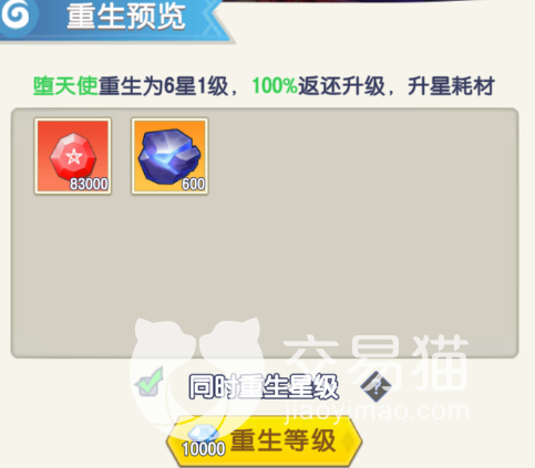 2、同时重生英雄星级时,英雄将被重生为6星1级。