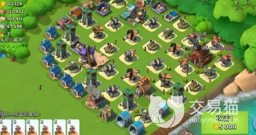 这套阵容主要特点就是防御坦克和野人了,3个最高级的加农炮再加上2个震爆器就能够解决大多数麻烦了,其次在基地附近安装好连爆地雷和震爆弹,可以有效的放置坦克的移动,而且还能顺便把敌军给击杀,还有一点就是3个加农炮的输出,可以让坦克消灭,别忘了,我们还是有火箭的建筑,作为最坚强的后盾武器,基本都教他们做人了。