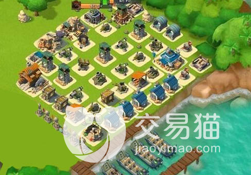 该布局不是那种比较密集的,将主要的火力输出都放置在了前排,而因为该岛的地形设置,玩家进攻的角度是受到了限制的,玩家这种防御阵型将生产线全部给保护好了,除非前排防御全部被击溃,不然自己的损失是很少的,至少在生产资源上的影响不大,除非进攻的时候使用的火炮攻击。