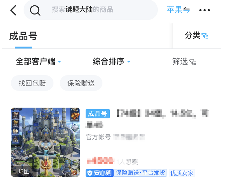 以上就是谜题大陆账号交易平台下载推荐的全部内容了,选择交易猫,玩家就能快速购买到想要的账号,后期出售账号也会更加方便,能为所有玩家都提供专属交易服务。