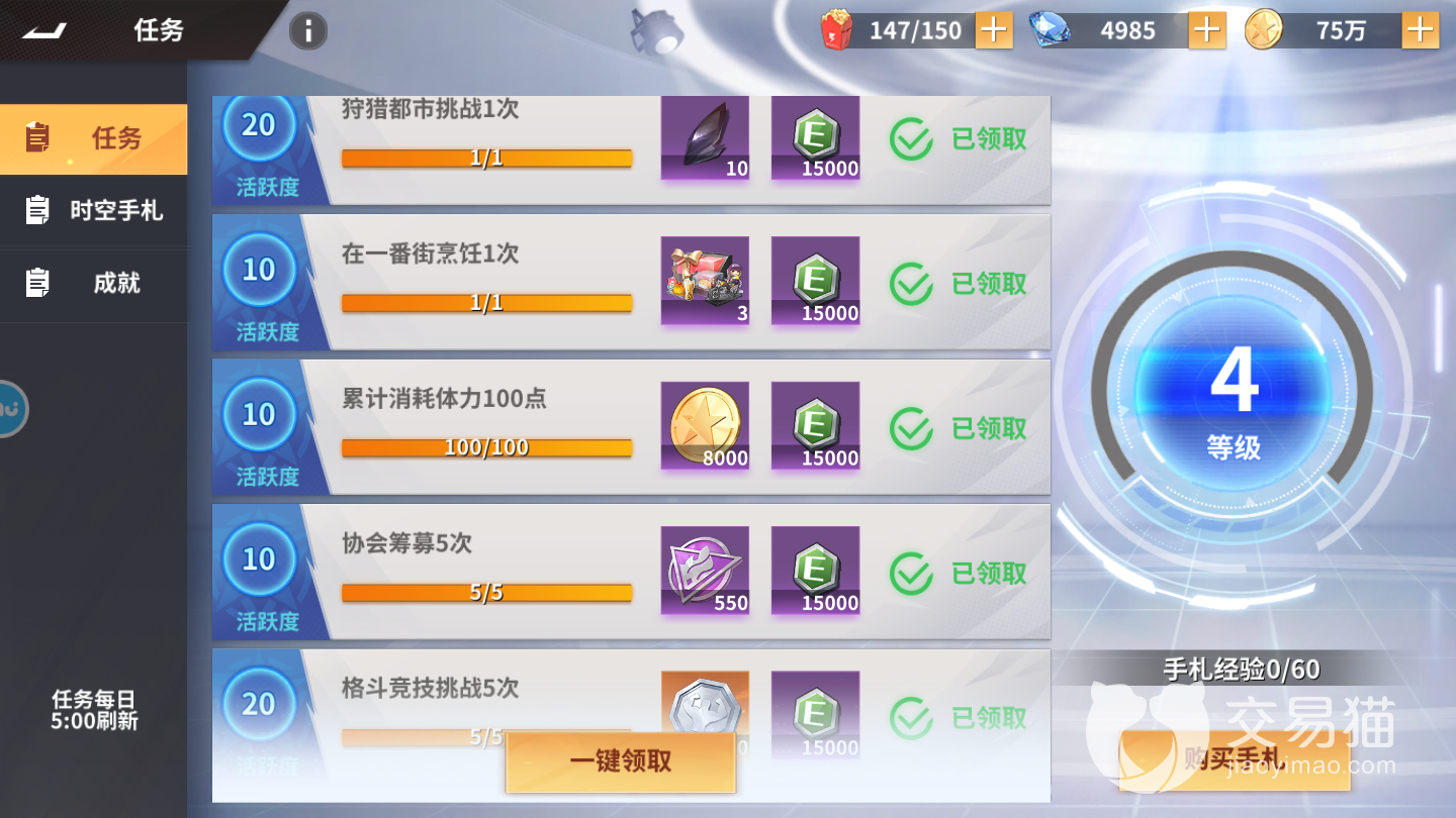 首先就是日常的活动了,玩家需要完成活动才能好获得最大化的经验,所以游戏是鼓励玩家我每天都要上线的,点击右上角日常任务,玩家完成之后就可以获得许多的经验了,还有钻石等奖励,也是很不错的,可以一并完成。