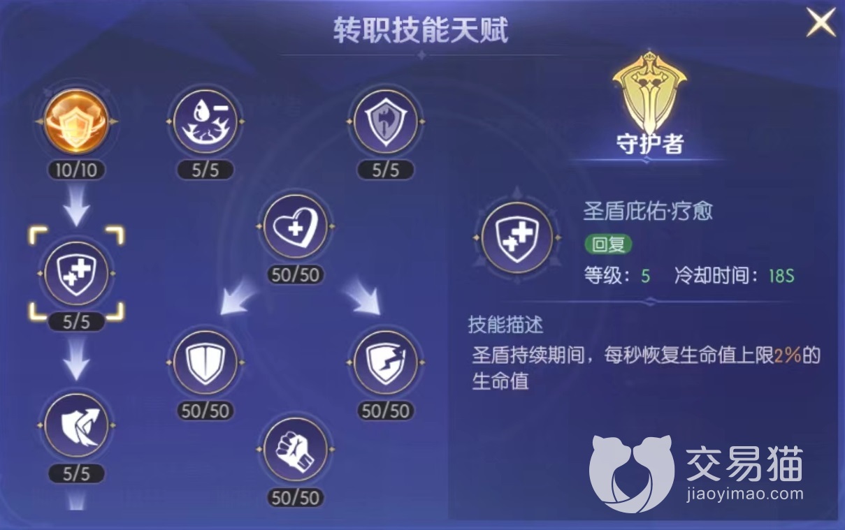 守护者则完全相反,转职后获得专属技能圣盾庇佑,召唤出一面圣盾来提升自己的格挡值和防御属性,持续4秒钟。持续时间虽然短,但是效果却很明显,所以无法做到全覆盖,需要根据场上的实际情况合理进行选择,一般是在boss开启高伤害技能时,守护者能够以此技能硬扛。对应的强化天赋为圣盾庇佑疗愈和圣盾庇佑回敬,前者效果是在持续时间内获得生命值回复效果,后者能够在持续时间内将格挡成功的伤害反弹给攻击者。