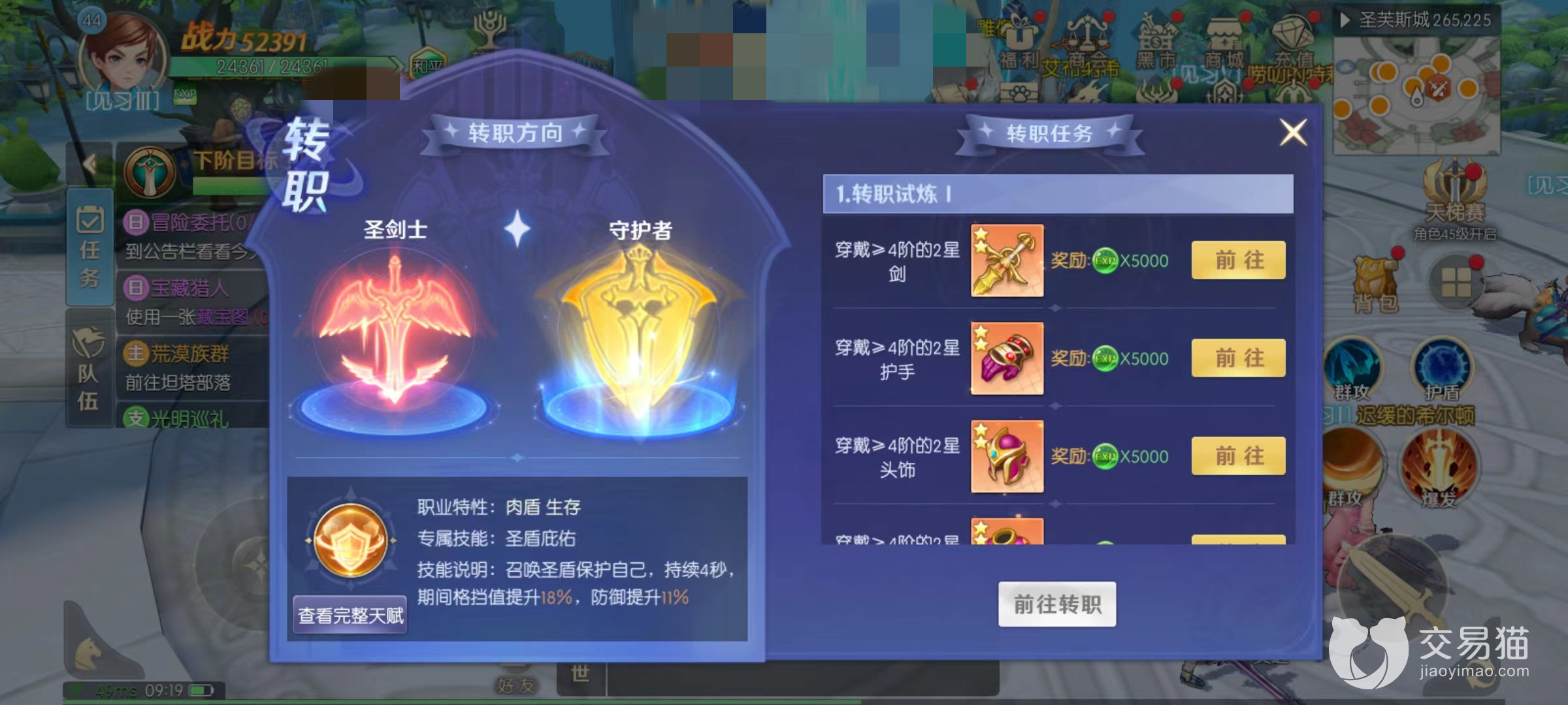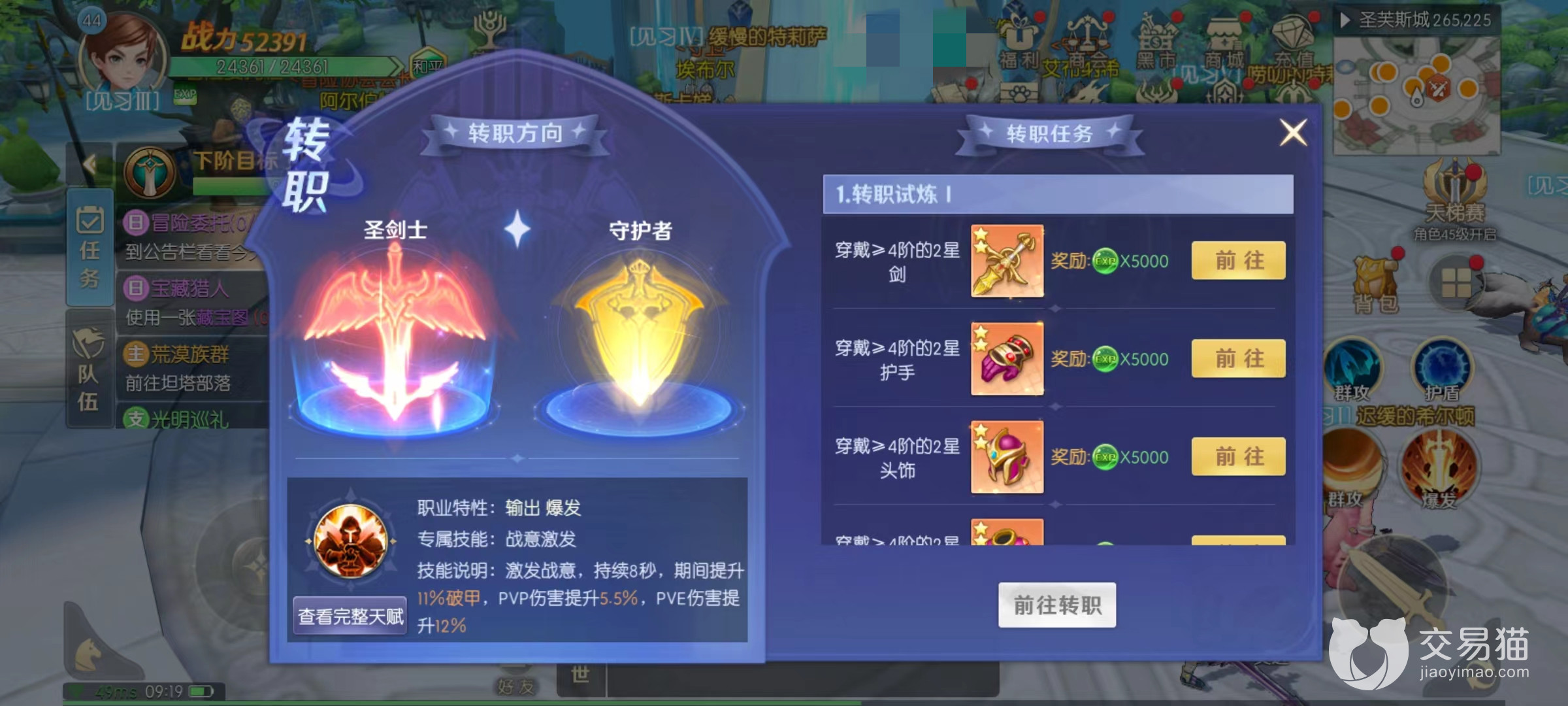 战士第1次转职的方向主要分为圣剑士和守护者,要想转职首先要身上的装备全部达到4阶两星以上。关于如何达成这一目标,小编在其他攻略中已经讲述过,这里就不再重复,感兴趣的玩家可以去九游平台查看对应攻略。这里主要说一下圣剑士和守护者各自的特点,明白了之后就知道该向哪一方向转职了。
