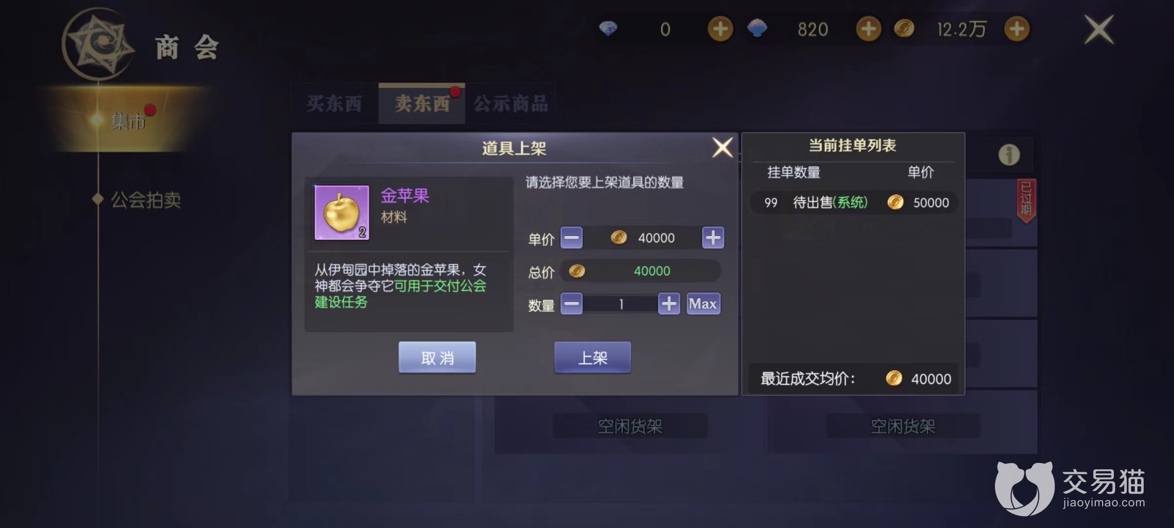 如果想要出售道具,则点击卖东西,此时会显示我们背包中所有可以上架的物品,选中之后输入要出售的单价数量就能点击上架了。如果不知道对应价格也没有关系,系统会给出建议价格,同时也会显示该道具近期交易的平均价格,只要根据这些资料合理进行定价就可以了。需要注意的是,能够上架的道具都是一些非绑定的物品,如果穿戴后已经绑定则无法在此出售。