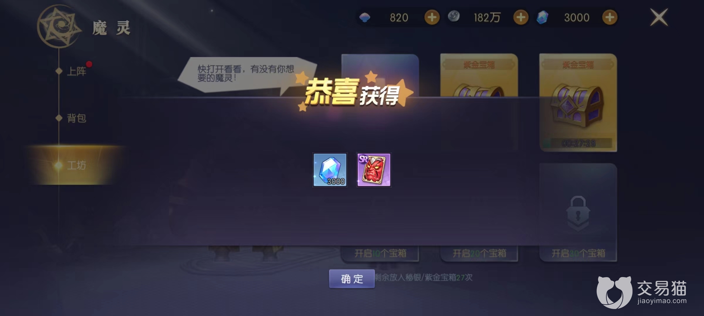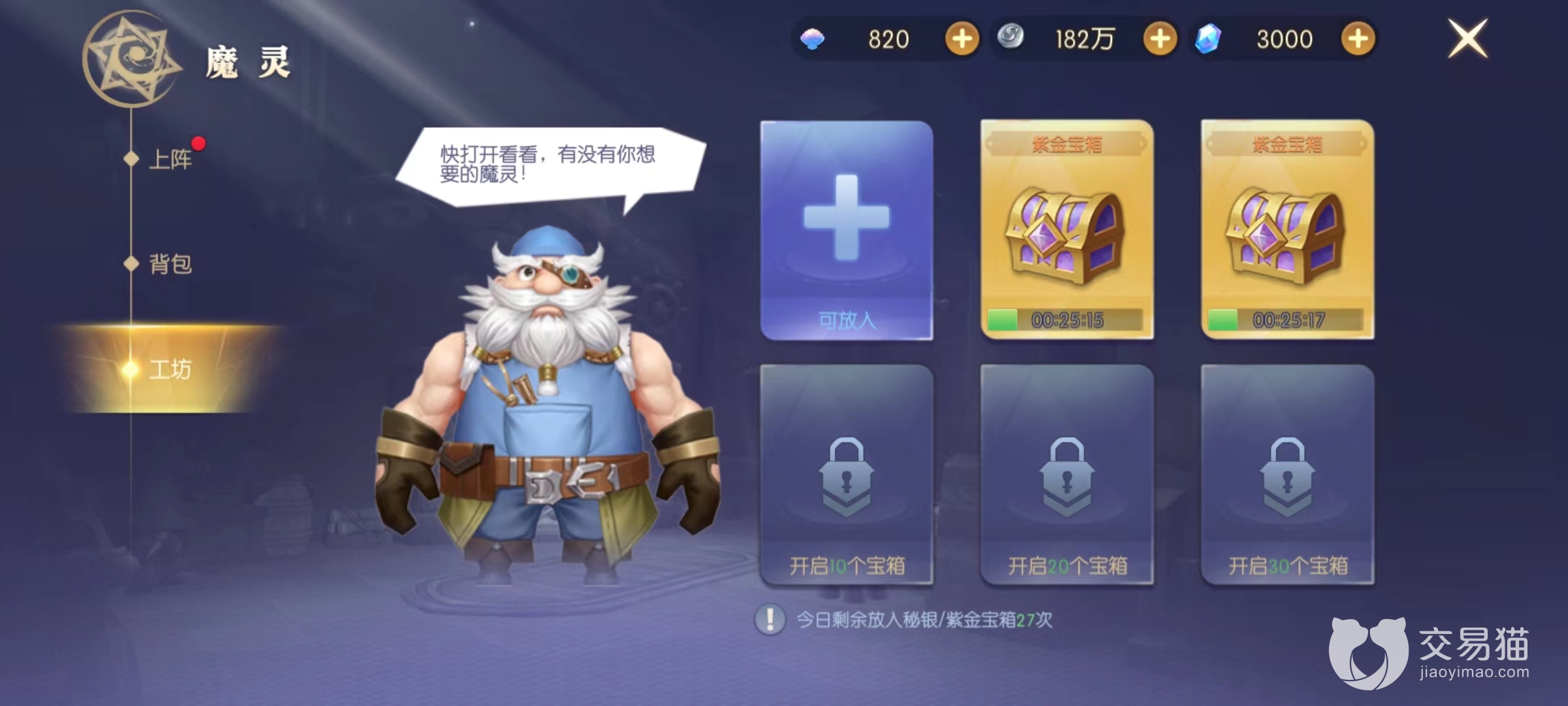获得的这些宝箱需要在工坊中才能打开,在点击界面右边的加号,可以将身上所有宝箱放入其中,半个小时后会自动打开,每天也能有一次直接点击的机会。最初只能同时打开三个宝箱,后期逐渐会解锁到6个,每天所有宝箱数量总计能放入30次,宝箱打开时就能随机获得里面的奖励。