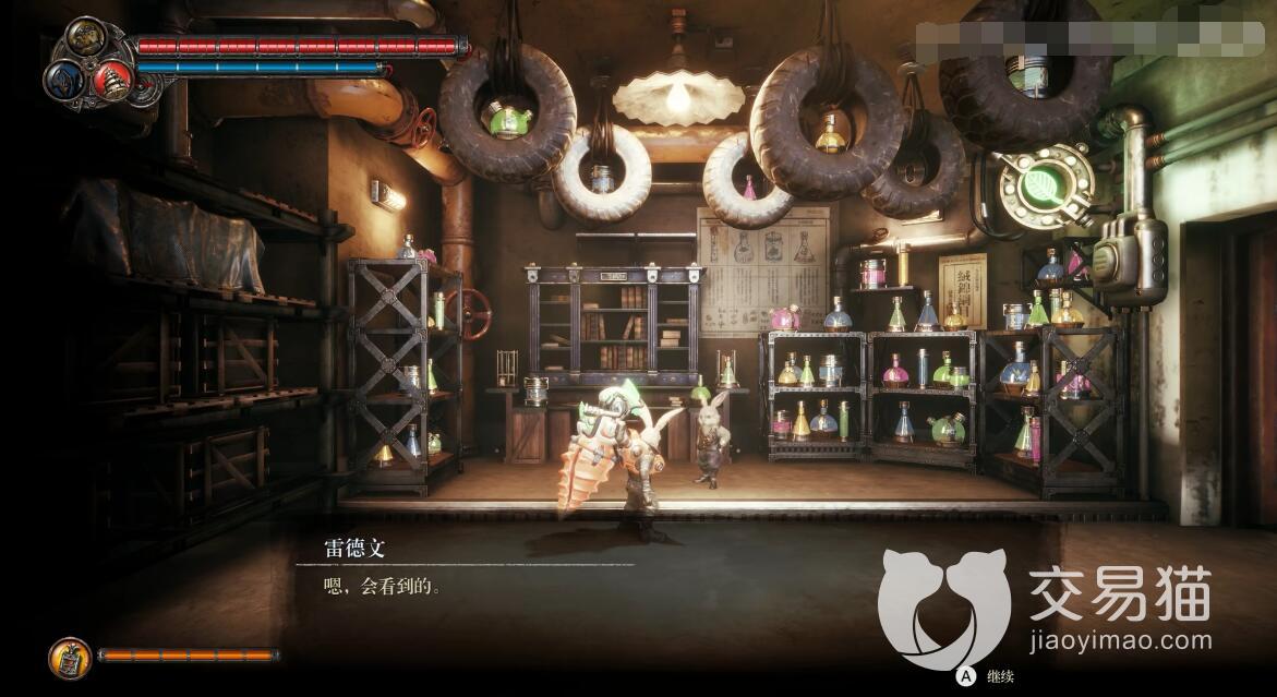 接下来,在城中继续寻找药水店铺。进入到该店铺的内部,玩家们会发现大量药剂,在这里购买药剂的话,会让主角在短时间内拥有较强大的属性加成。当然,与店主进行了对话之后,玩家们可以将战斗当中得到的种子交给他,对方此时就会赠送一个神秘碎片给玩家。目前,种子可以从战斗当中击败敌人来获取。