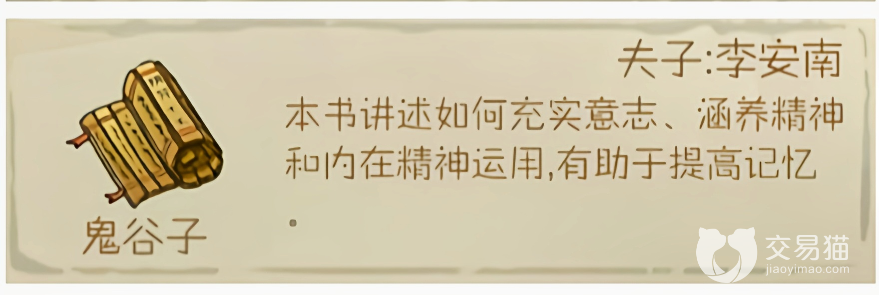想要增强村民记忆力的方式就是让他们学习“鬼谷子”这本书籍,它只有在梅山镇,新郡和毛竹岭这几个地方才能搜集到,它能够有效地加快玩家学习技能的速度,据说配上“尚书”一起学习会有更好的效果哦!