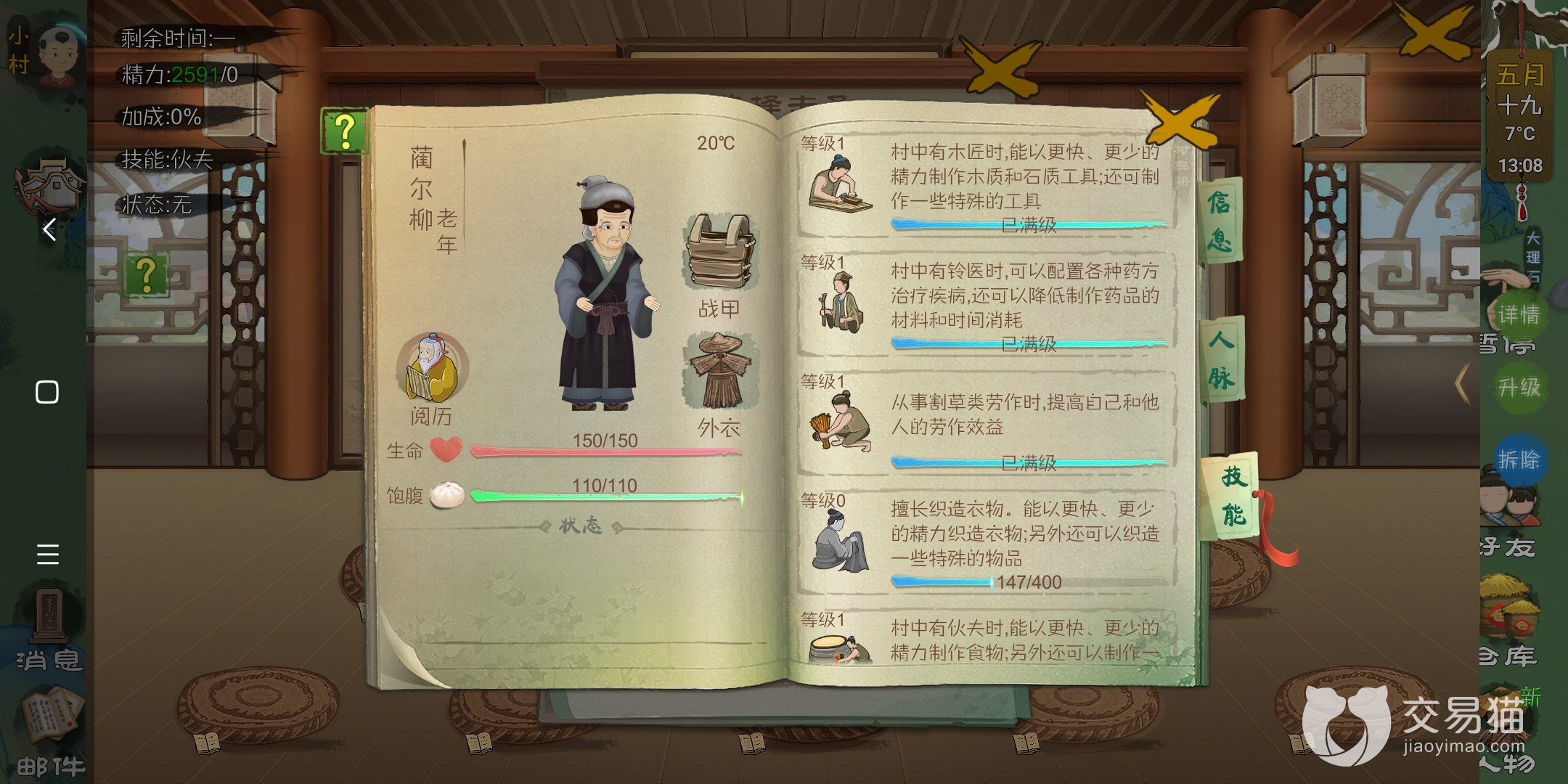 当前能够学习到的技能有八种,它们对应着各种生活中常见的工作,其中就有一种是能够让村民学会巧织这个技能的书籍,它的名字叫做“蚕书”,它基本外面所有的地方都可以获取,除了名叫廖溪村的地方,学完之后村民就能更快的做出衣物来了。