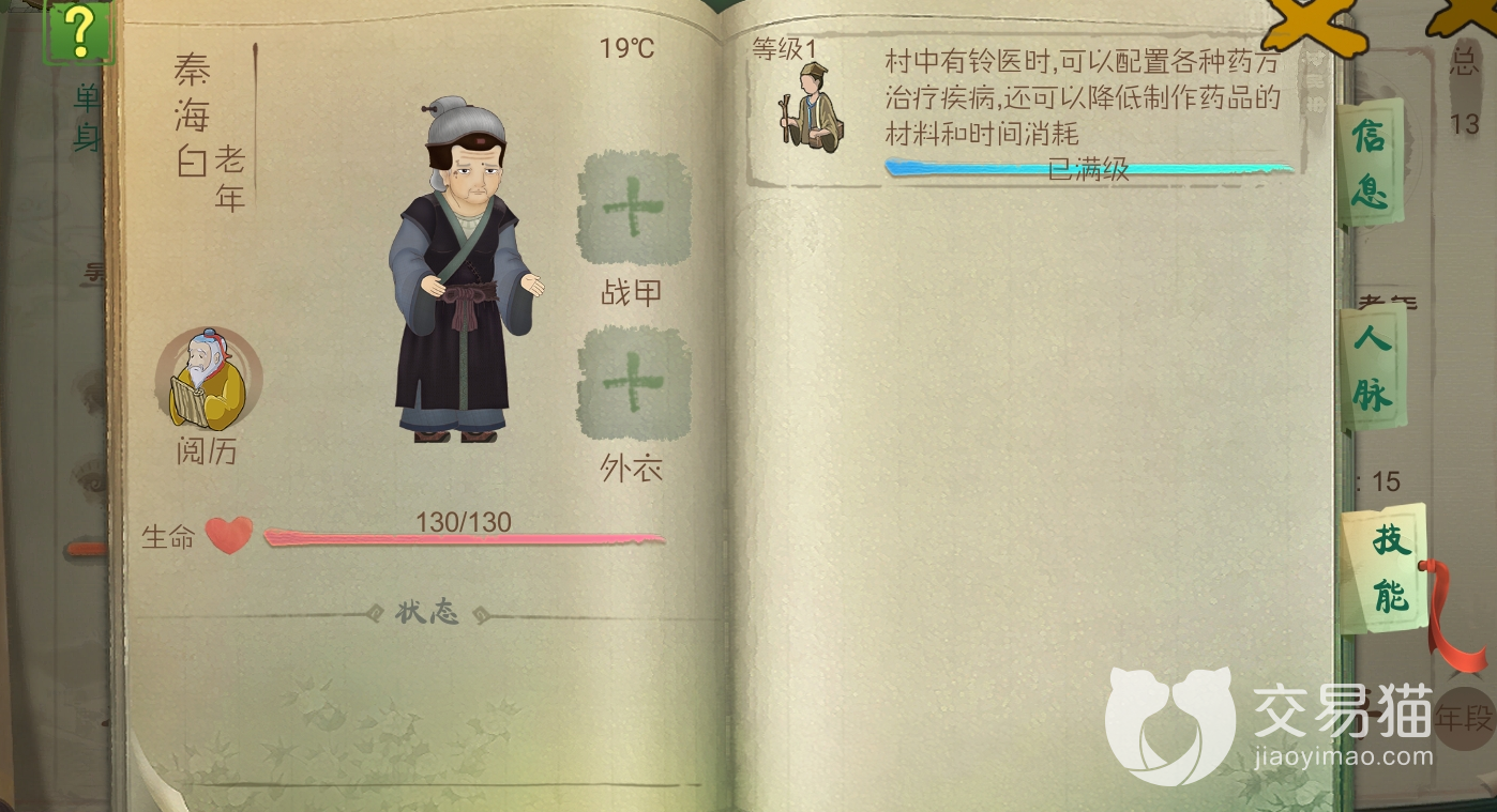 在这里最常见的就是生病了,在可学习的这些技能中,有一项就比较是医者就是必不可少的了。学习它要用到的书本叫“黄帝内经”,它的获取地方是除了廖溪村都可以。学完之后就可以开始配置处方,在制药的时候也能有效的减少它的用量。