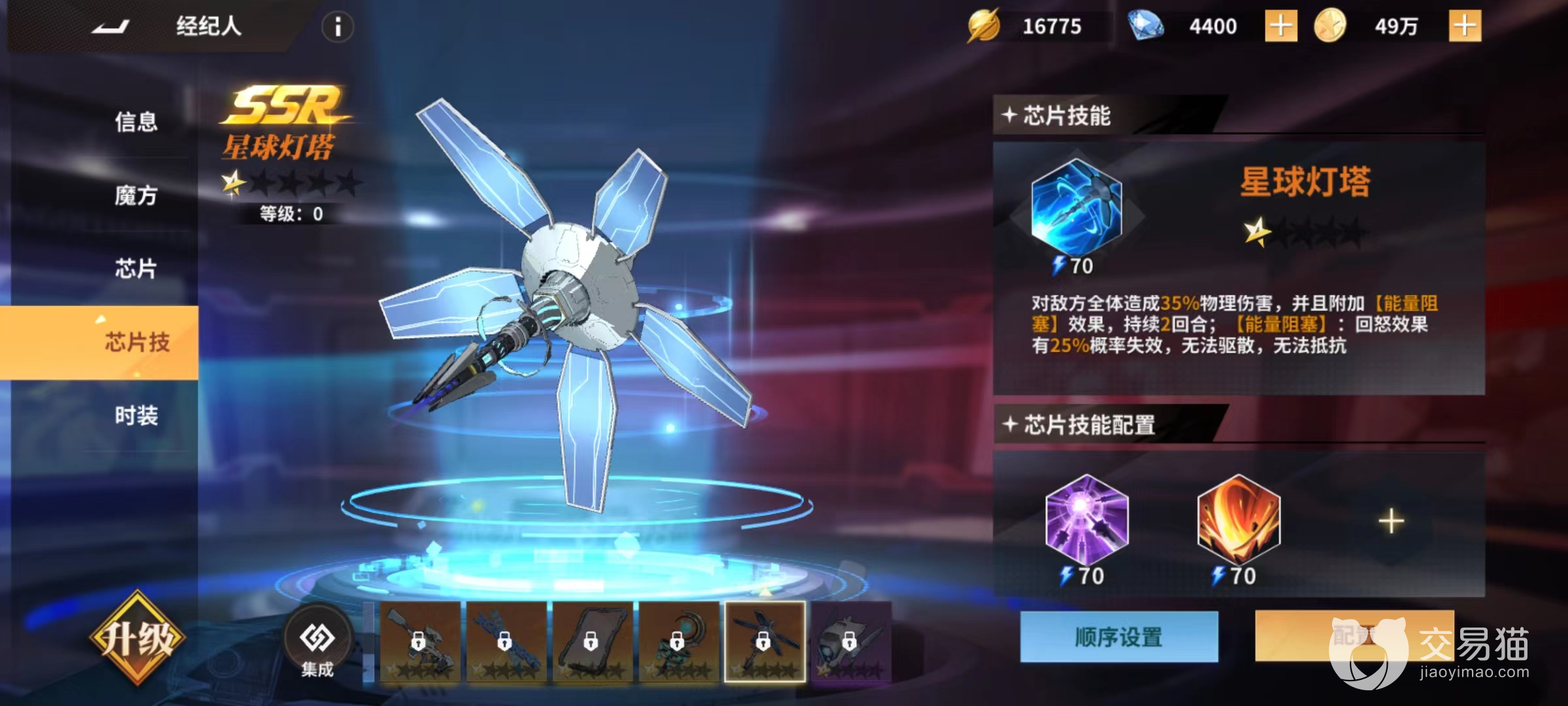 第5个是星球灯塔,对敌方全体格斗家造成一次物理伤害,同时附加能量阻塞效果,被阻塞敌人有几率无法获得怒气。属于限制型的芯片,也是非常好用的一个效果,控制了对方的回怒就使其无法放出关键大招,在PK中拥有很好的效果。
