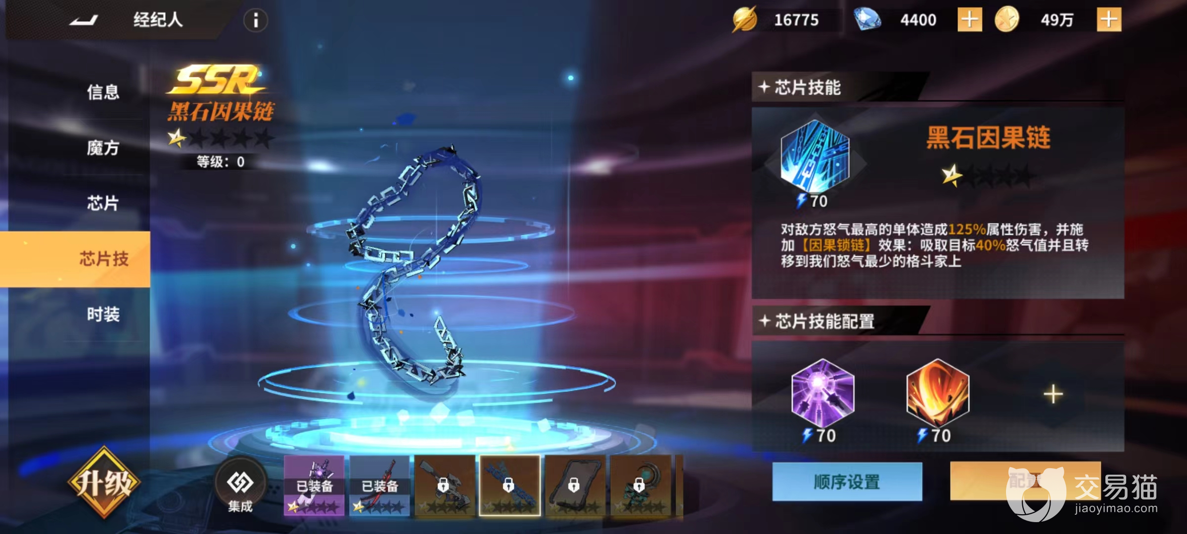 第2个是黑石因果链,效果是直接锁定对方当前怒气最高单位,造成一次伤害并且施加因果锁链效果,将目标身上的怒气值转移给我方一名怒气最低的角色。这是当前大家非常喜爱的一个,不仅能够限制对方使用技能,还能提高我方释放大招速度,起到双重效果。