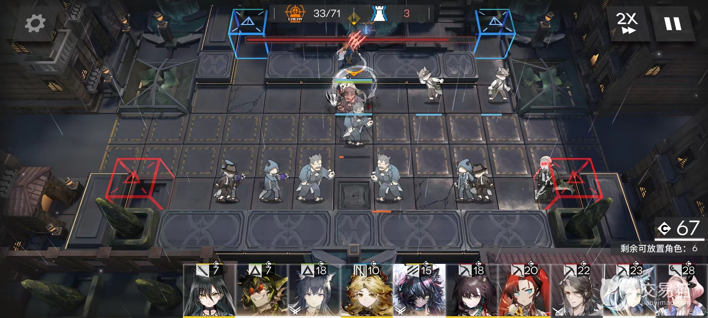 小编本关中选择的是缄默德克萨斯的三技能,三技能可以对九格内的敌人造成伤害,范围性的技能加上不低的伤害,很适合用于清杂。