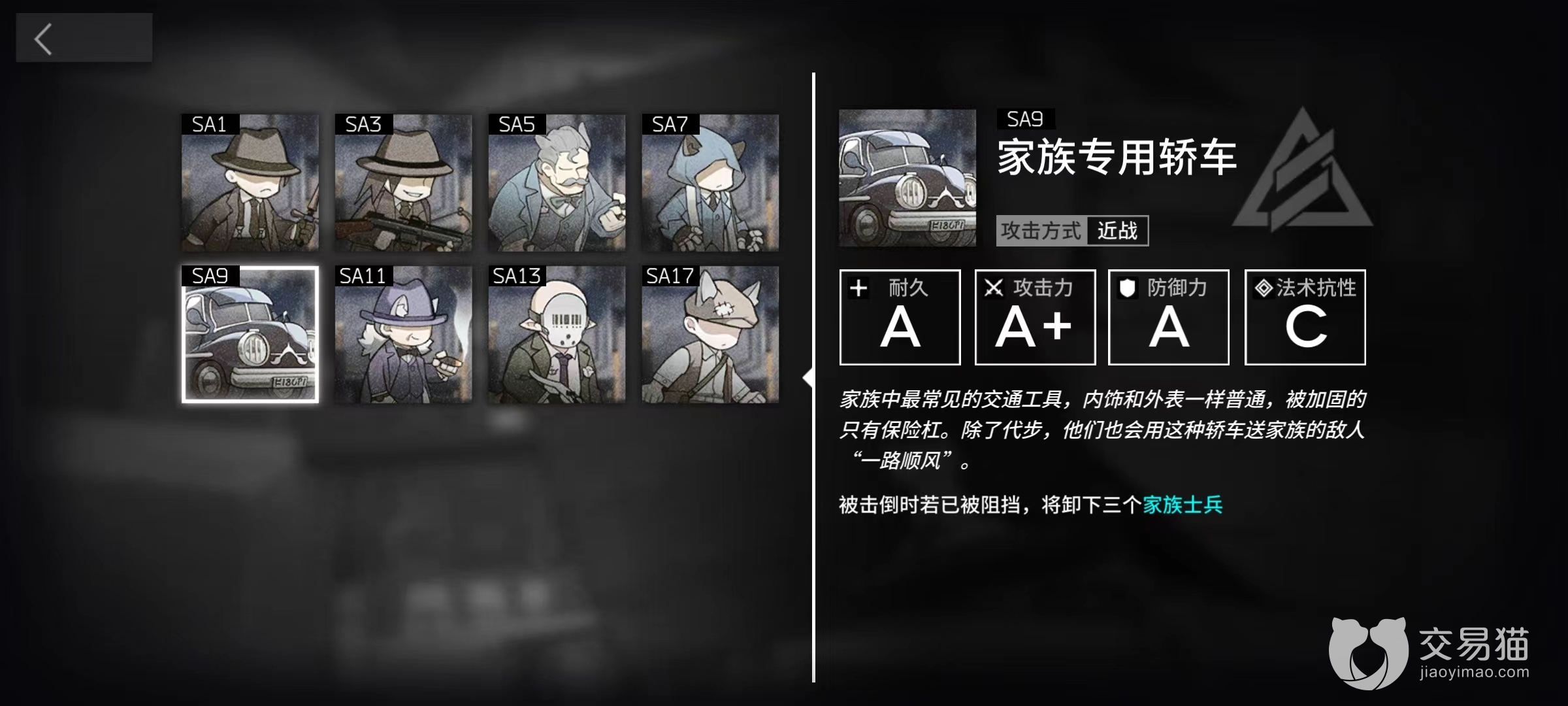家族专用轿车上承载着三明家族士兵,如果家族轿车是在被阻挡的状态下击倒的,那它在被击倒之后,就会下来三个家族士兵,所以要处理它,要么用多阻挡单位强拆它和卸下的三明家族士兵,要么用无阻挡流击倒它。