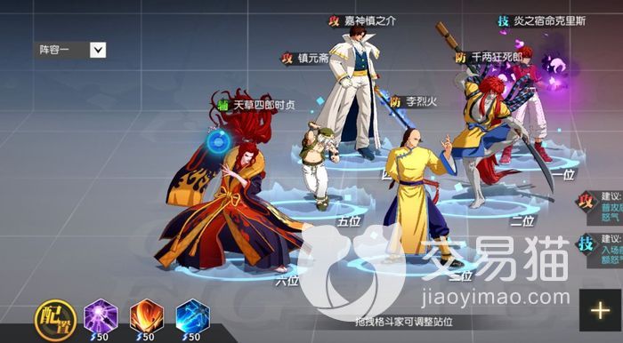 例外在后排上,推荐大家使用一个群体攻击的还有一个单体攻击的输出,这样后排上输出也是足够的。比如草薙京和八神,他们都是输出高,爆发性非常的高,可以在后排持续输出,不用在意敌人的攻击,毕竟前排还有一个肉盾在游戏前期,大家可以把暴气先给勇者,然后再让后排的输出以最快速度打出伤害来。