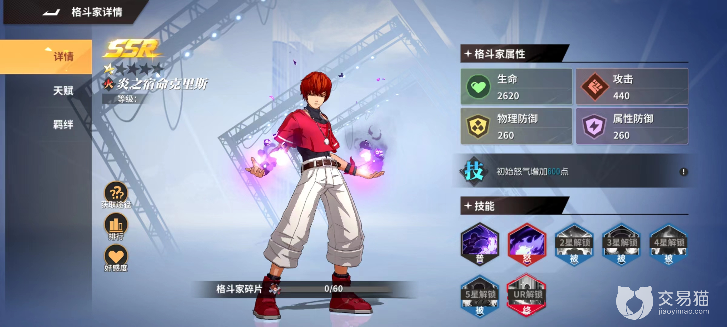 炎之宿命克里斯属于技能型角色,怒气攻击技能暗黑大蛇输出对方全体,并且在技能使用后己方所有格斗家怒气回复效率会提升,能够叠加两层。克里斯可以说是这一套阵容发动机,能够显著提高技能释放速度。达到5星时解锁被动黑暗之炎,更是在敌方使用技能时己方的格斗家额外回复怒气。