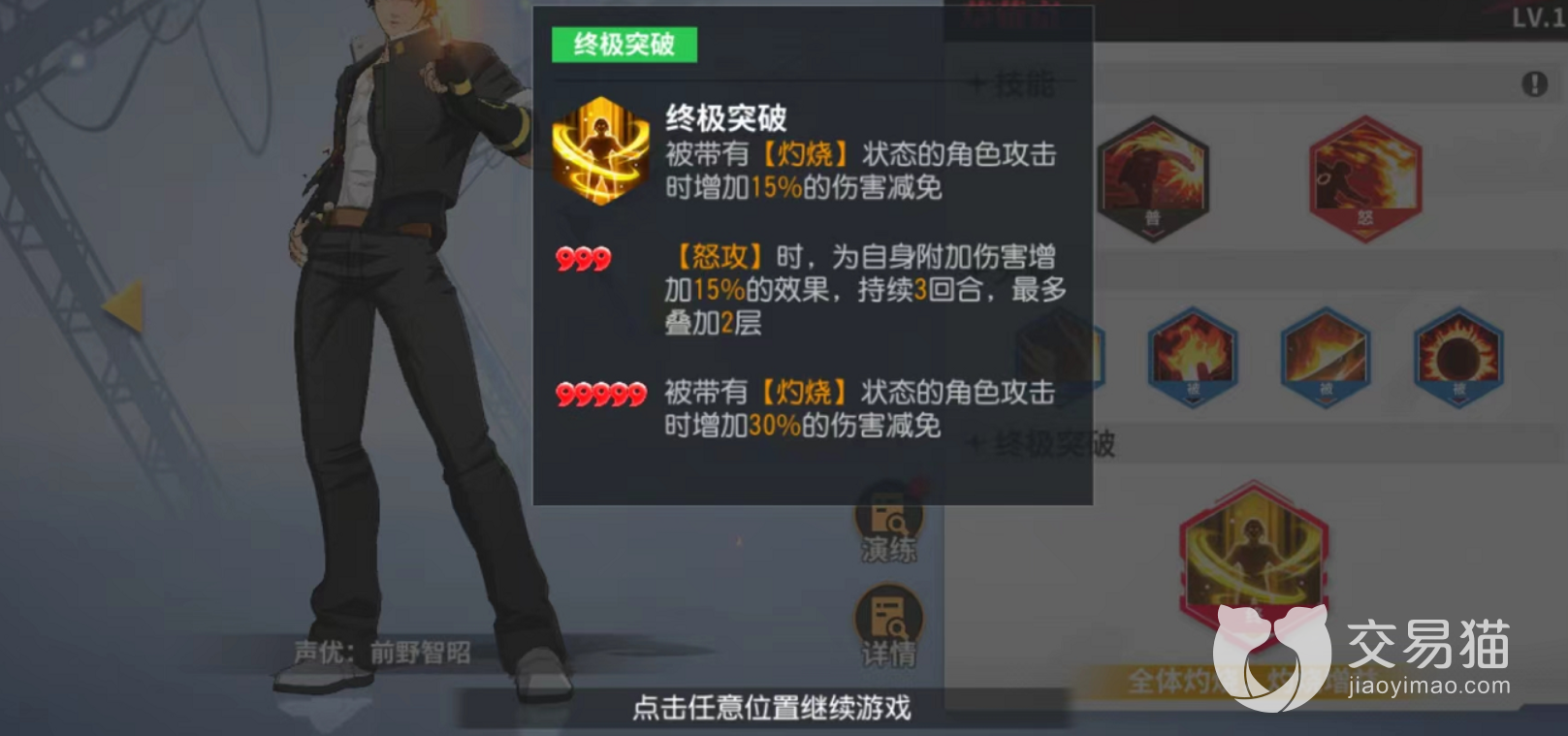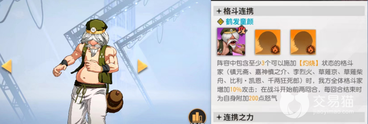 火队前期时的缺人挺严重的,草薙京的能力十分契合火队的要求,上BUFF,加深伤害,甚至于在前排承伤都能做的来,这让他成为了想要发展火队的小伙伴们在前期绝对不能错过的一位成员。