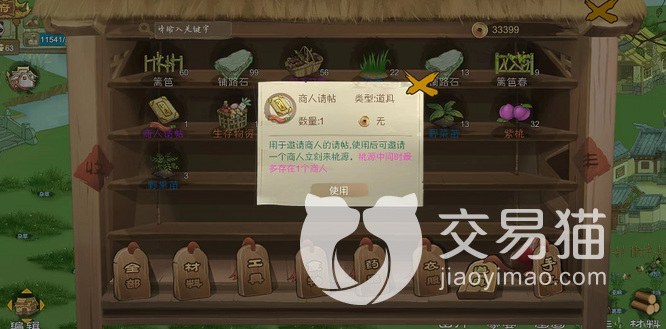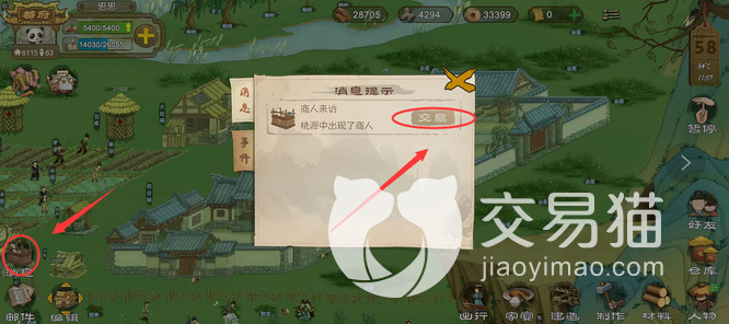 最常见也是最便利的获取方式就是在游戏中的商人那里获得,只不过商人并不是固定在一个地方的,他会不定时的出现在玩家的桃园中,在他来访的时候,游戏界面左下角的消息图标会提醒各位,通过这里还可以直接来到购买商品的界面。