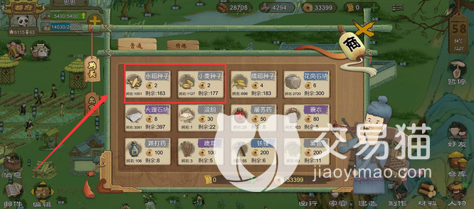 货架上的种子都是有购买限额的,其中水稻种子购买一次需要花费两个铜币,小麦种子也是两个,不过糯稻种子要贵一些,需要花费四个铜币,玩家可以依据自己的需求进行购买。另外持有商人请帖的小伙伴可以不用等待,使用后商人就会和直接到来。