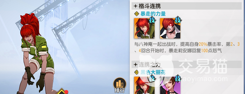 快速启动高爆发能快速联想到的人就是暴走二人组了,疯娜本身优异的输出效率,能够在短时间内打出相当恐怖的数字,并且自带回复怒气,增加攻击力等自身增益效果;疯八也是同样的道理,并且两人同时出站时触发的连携更是能够增加此二人的输出上限。