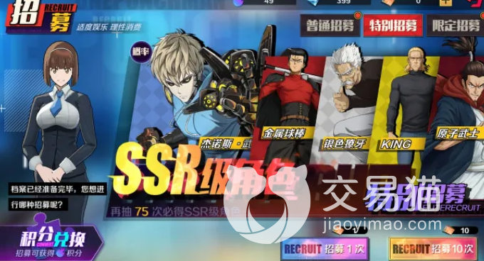 以上就是小编今天关于一拳超人正义执行所有强力的ssr角色推荐,希望能对你有所帮助。游戏中的ssr以及sr之间差距还是比较大的,遗憾的是,这种划分方式虽然符合原著,但也有一定的瑕疵。缺点就是级别等级的差异会造成战斗力上的巨大差距,导致ssr级的角色对sr级别的玩家造成的数据上的碾压,让这些低等级的玩家很有可能战斗起来有心无力,这对卡牌游戏的发展并不是一件好事。目前游戏中的解决办法,就是给低级别的人物增加一些辅助能力,用自己的能力来强化其他S级角色,这也是一种折中的办法。但是总体来说游戏平衡已经很不错了,只要合理搭配阵容,可玩性还是很大的。