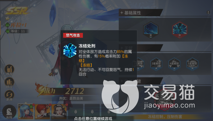 八神庵是一个高输出的角色,他不仅伤害高,而且还带有控制效果,可以精致的打到对面的角色,基本上只要放出这个技能都可以打到敌人。库拉的技能带有冻结效果,也就是可以冻结对面的敌人,而且这个技能还是个群体攻击效果,一次可以控制多名敌人。在这个对中,她算是核心人物,只要击中敌人,敌人就无法逃跑。