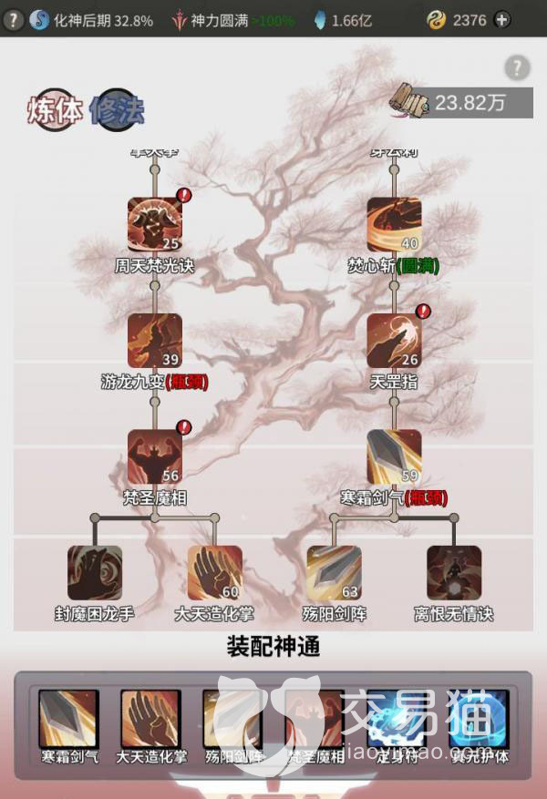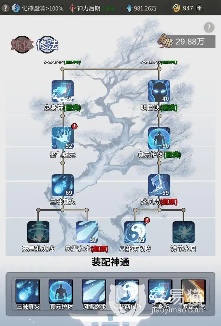 神通是角色技能,拥有法修、体修两种培养方向。这两类神通搭配不同。在修炼过程中,玩家神通搭配非常重要,它决定角色发展方向。