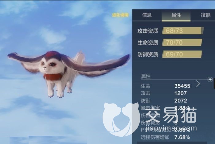 大家可以再试试养马,马比较容易获得,而且还可有冲刺效果。而且当马后期经过培养把等级搞上去了以后,在吞噬了几只白翎雕和秃鹫,就可以获得飞行技能,而且在飞行的状态下还能冲刺。孟极则是使用的跳跃技能,加上翅膀后跳跃技能变成上升,但是这样在飞行中不能冲刺,与马还是有差别的。