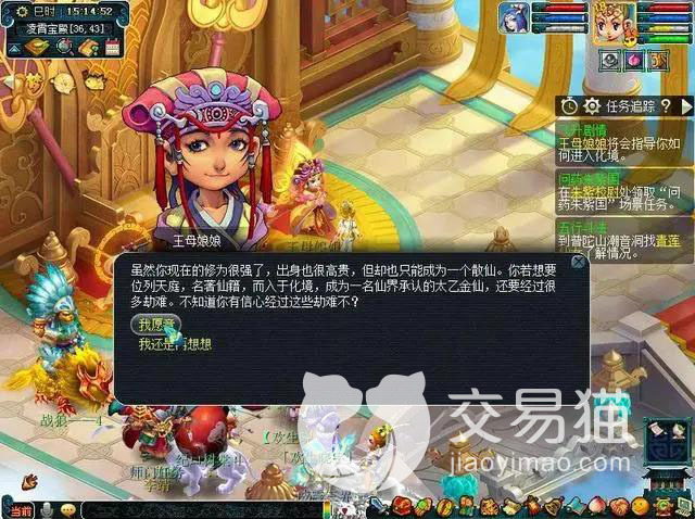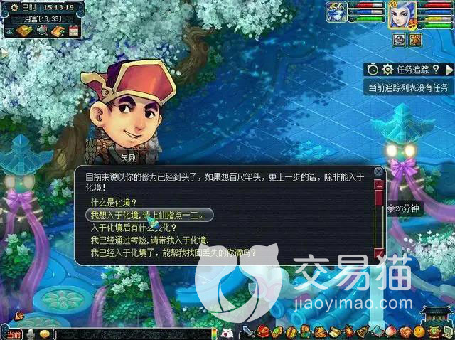 飞升任务领取要求。在月宫地图中,玩家寻找NPC吴刚,才能够领取飞升任务。参与这一任务,玩家需要前往不同地点,比如龙宫、天宫凌霄宝殿、五庄观、普陀山、长安、大唐官府、化生寺、女儿村、地府、盘丝岭等。