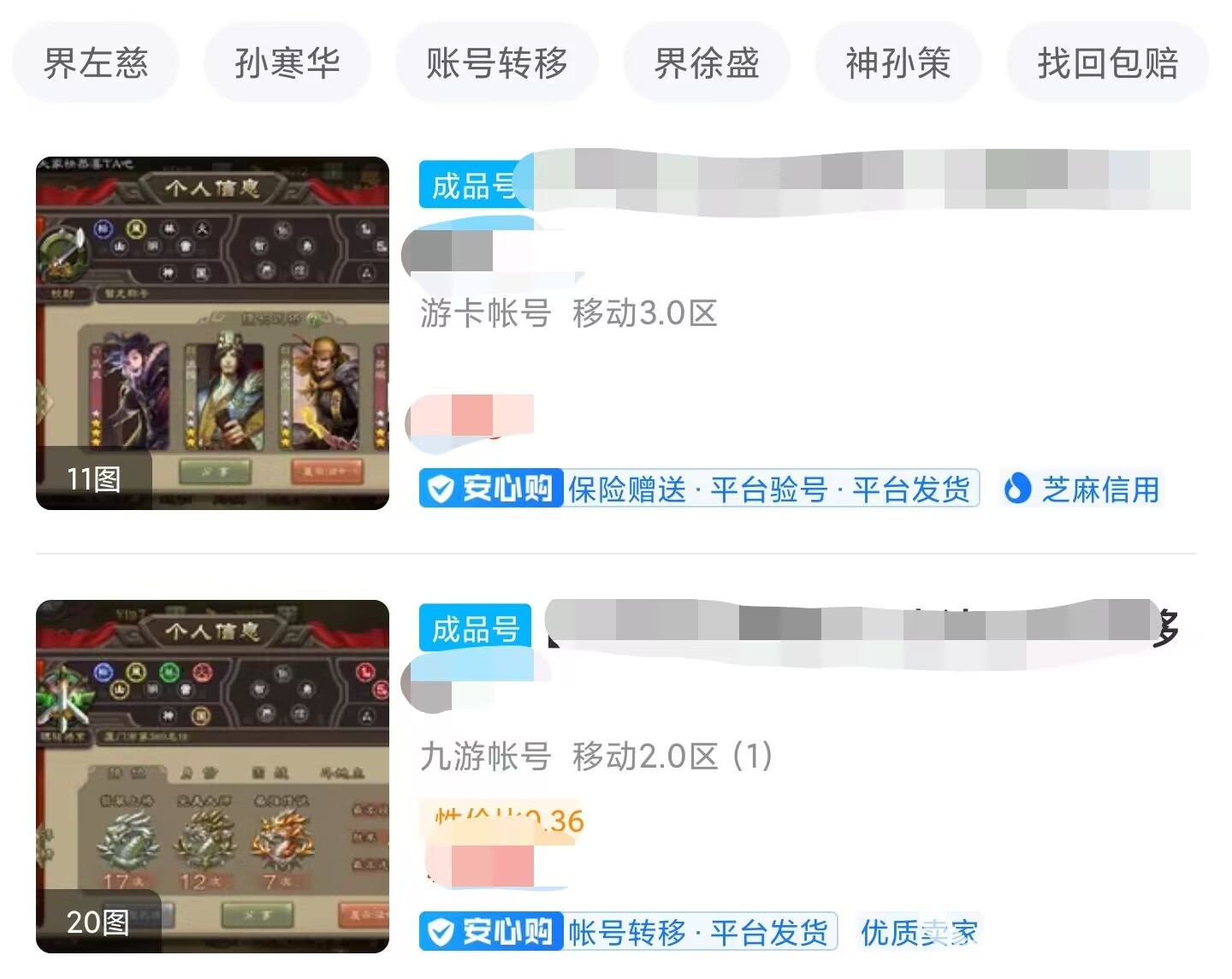 三国杀移动版对于国战的硬性需求就是必须达到40级,而一个新手至少经历过两周的沉淀才能达到,购买账号就显得尤为必要。交易猫平台有指定武将的角色账号,还有一些氪金退游的成品号,该游戏的账号价值就取决于武将的数量,武将很多但是价格更低的账号需要玩家们自己去发掘。