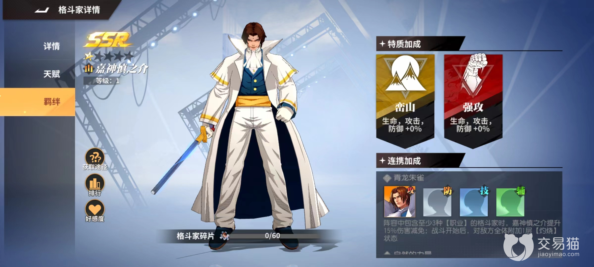 在全明星激斗中出现的都是大家非常熟悉的snk漫画中的人物,嘉神慎之介就是其中之一,今天小编来讲一下全明星激斗嘉神慎之介怎么样。作为一名强悍的SSR品质格斗家,嘉神慎之介拥有非常强力的技能效果,在目前的阵容中排在第一流梯队。但是具体技能如何,又该怎么样去搭配队伍,一起来看吧。